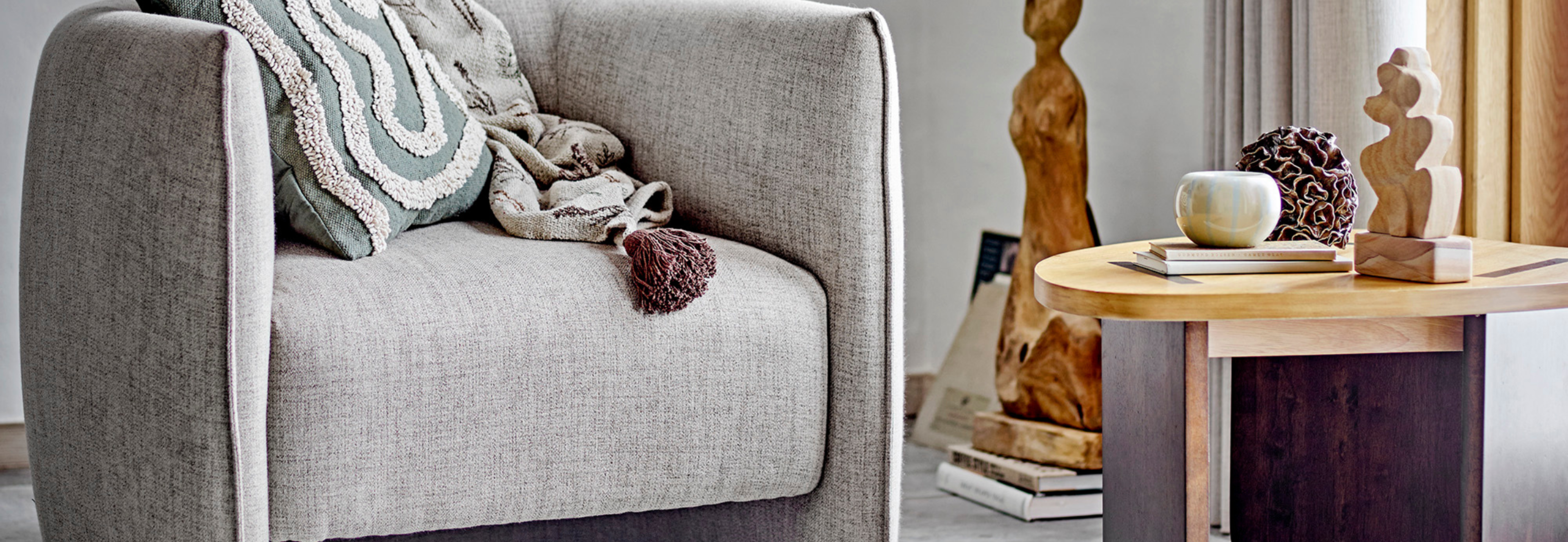 Bouclé-Loungesessel in Natur mit skulpturaler Form