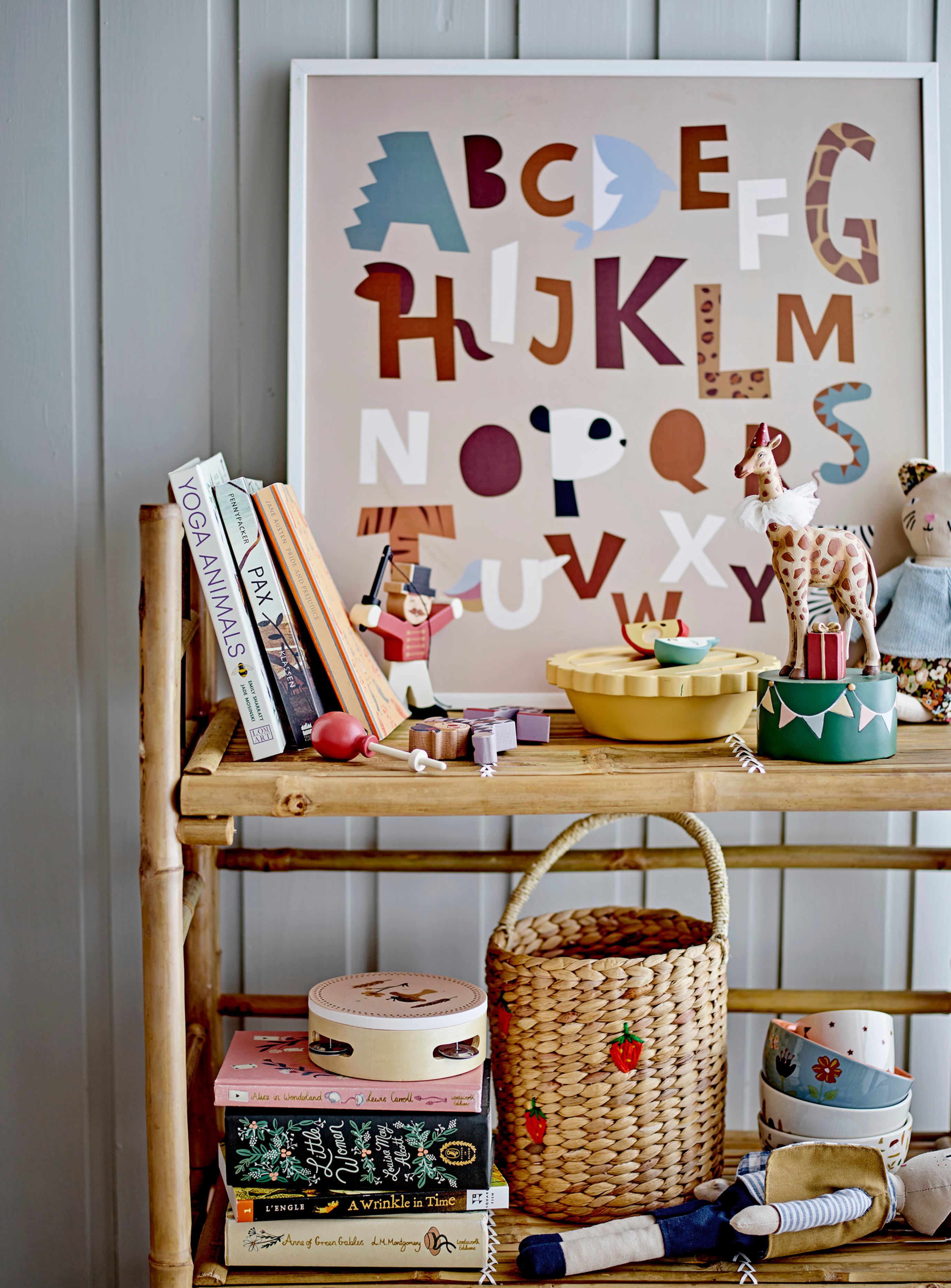 Die Memmo Illustration zeigt das Alphabet in Form lustiger Tiermotive in sanften, harmonischen Farben. Sie bringt nicht nur Freude ins Kinderzimmer, sondern lädt gleichzeitig zum spielerischen Lernen ein. Der weiße Rahmen aus Kiefer sorgt für einen natürlichen, ruhigen Look, während die Plexiglasfront das Bild leicht und sicher macht – ideal für die Wand über dem Bett oder der Spielecke.