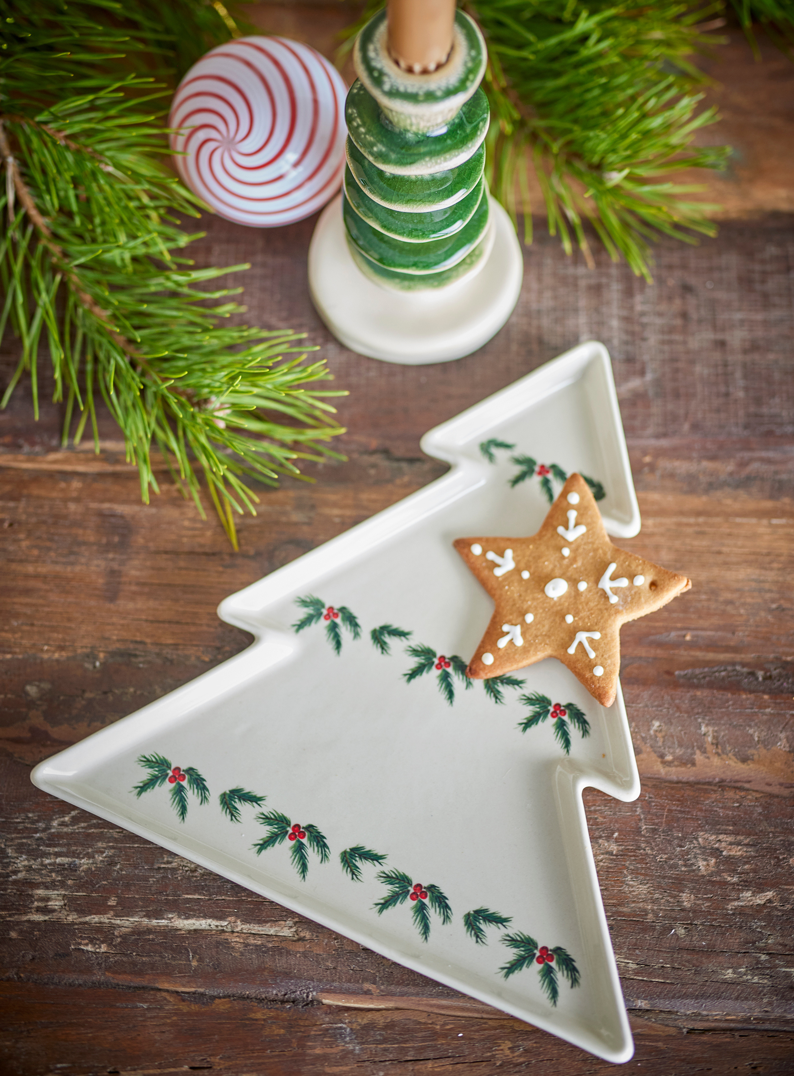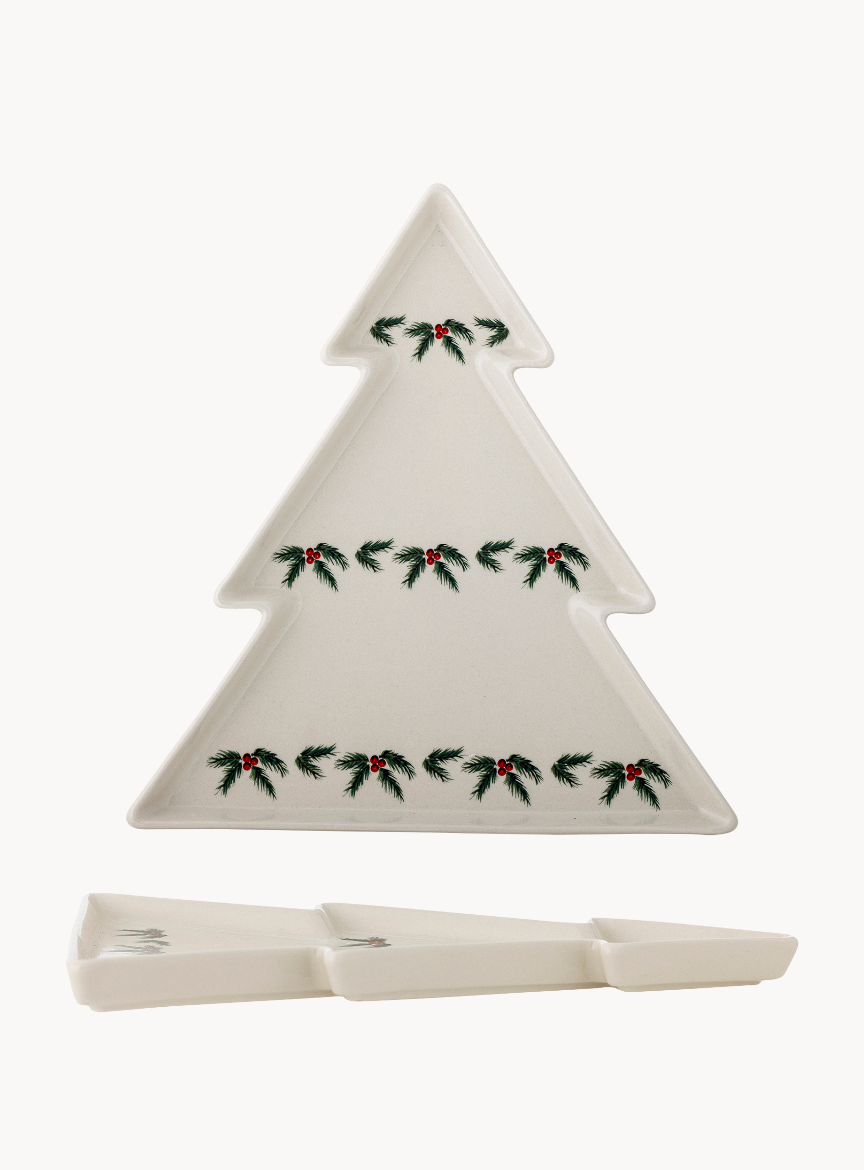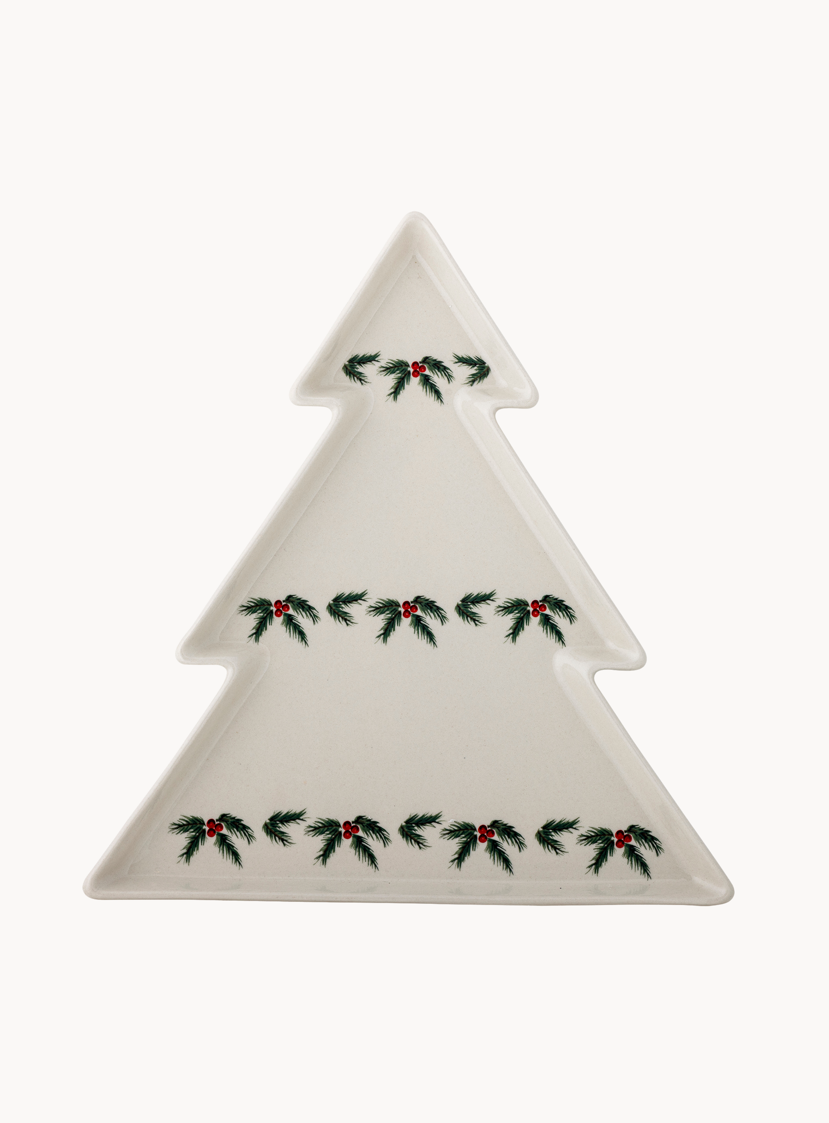 Die Berry Servierplatte von Bloomingville ist eine stilvolle Ergänzung für jede festliche Tafel. Gefertigt aus hochwertigem Steingut und geformt wie ein Weihnachtsbaum, besticht sie durch ihr elegantes Design und ein liebevoll bedrucktes Weihnachtsmotiv. Perfekt zum Servieren von Gebäck, Vorspeisen oder süßen Leckereien – und dank ihres neutralen Tons ideal kombinierbar mit jeder Weihnachtsdekoration.
