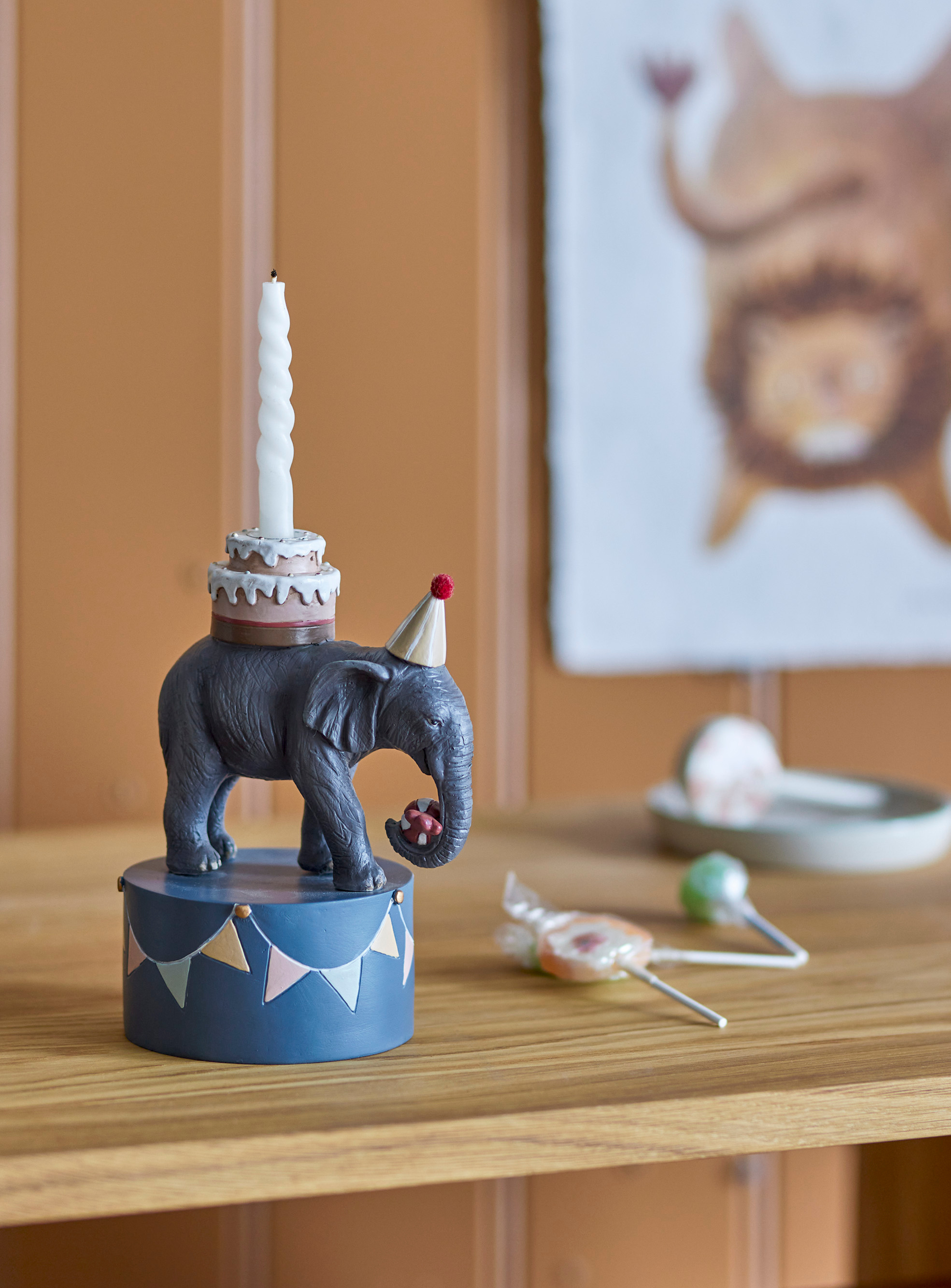 Dieser fröhliche Kerzenhalter zeigt einen kleinen Elefanten und ist eine liebevolle Ergänzung für jeden Geburtstagstisch. Er eignet sich perfekt als Geschenk, das Kinder viele Jahre begleitet, und sorgt für einen schönen, festlichen Akzent bei jeder Feier. Aus robustem Polyresin gefertigt ist er langlebig und leicht zu reinigen.