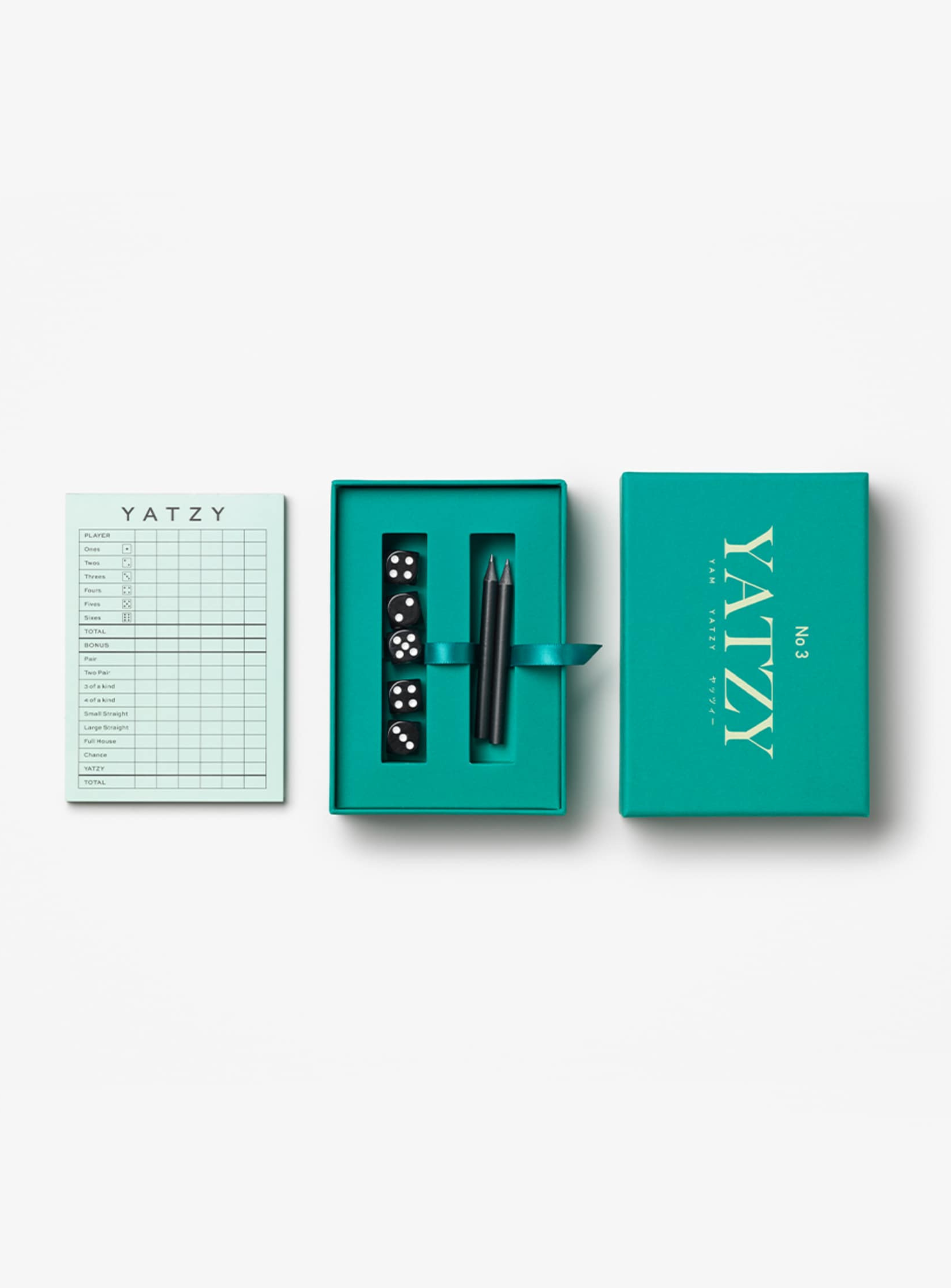 Classic Yatzy verleiht dem beliebten Würfelspiel eine moderne und elegante Note. Das Set enthält fünf schwarze Würfel, zwei schwarze Bleistifte und einen 50 Seiten starken Spielblock. Die leicht verständlichen Anleitungen in Englisch, Französisch und Deutsch machen den Einstieg einfach. Das Spiel ist für bis zu sechs Spieler geeignet und wird ab einem Alter von vier Jahren empfohlen.