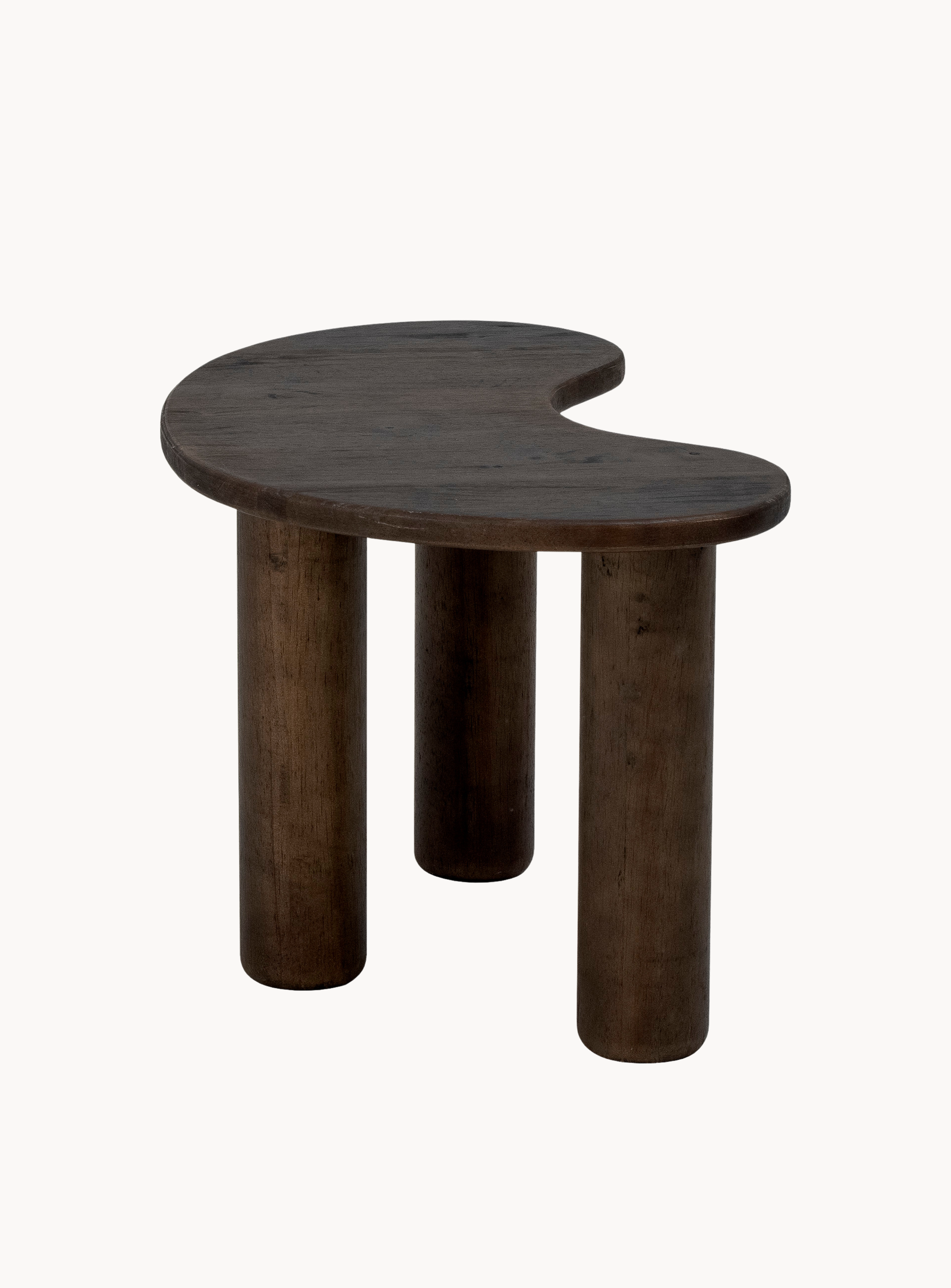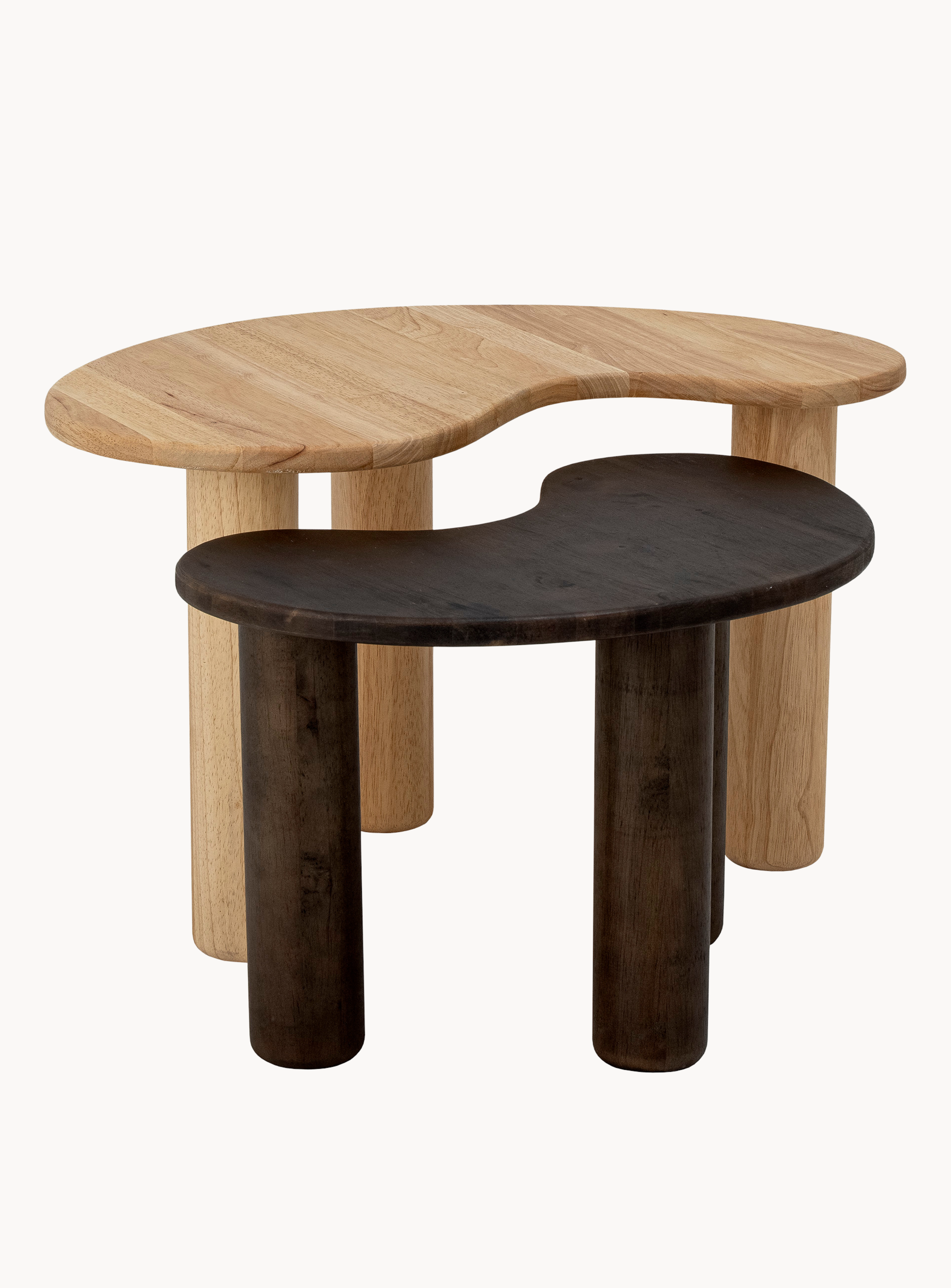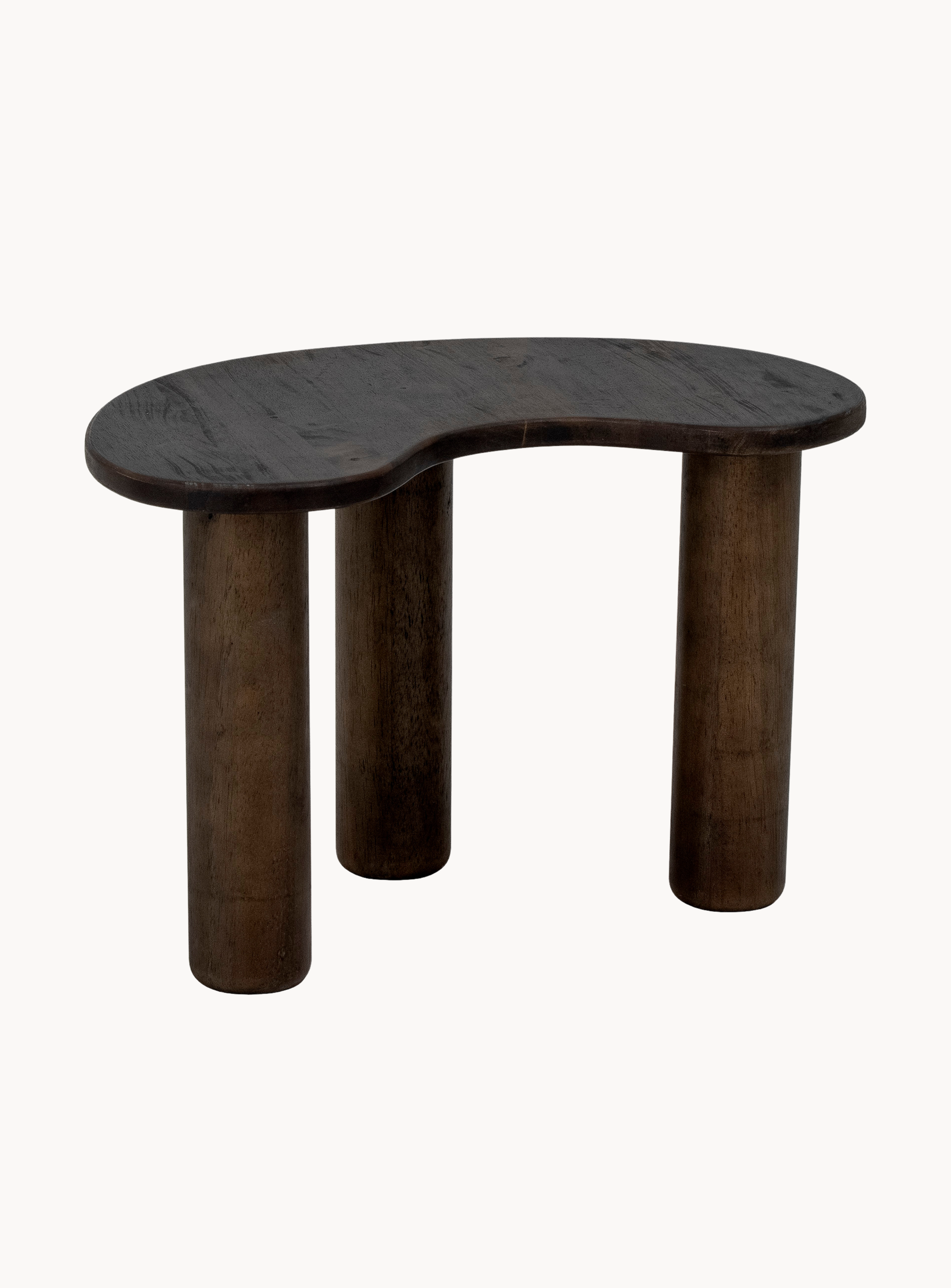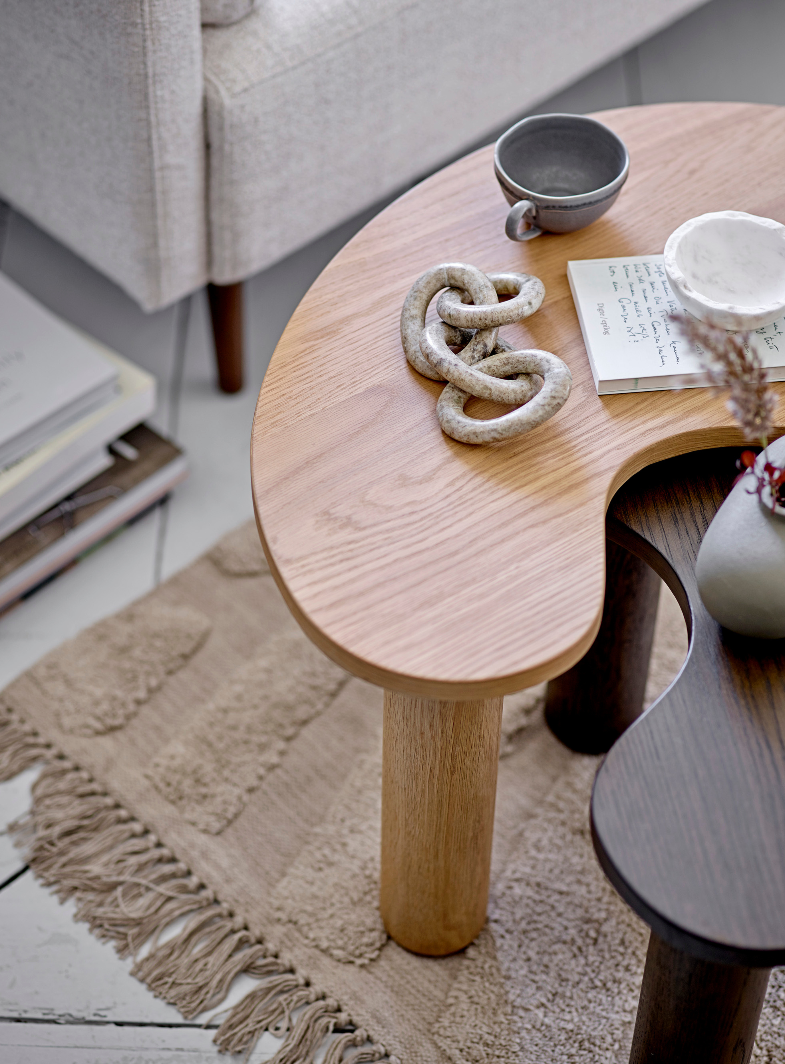 Der Luppa Couchtisch besteht aus glattem Gummibaumholz und zeigt eine ruhige organische Form, die eine warme und gemütliche Atmosphäre im Wohnzimmer schafft. Die dunkelbraune Oberfläche wirkt modern und natürlich zugleich und fügt sich mühelos in verschiedene Wohnstile ein. Durch seine kompakte Größe eignet er sich perfekt für kleinere Räume, Leseecken oder als ergänzender Beistelltisch.