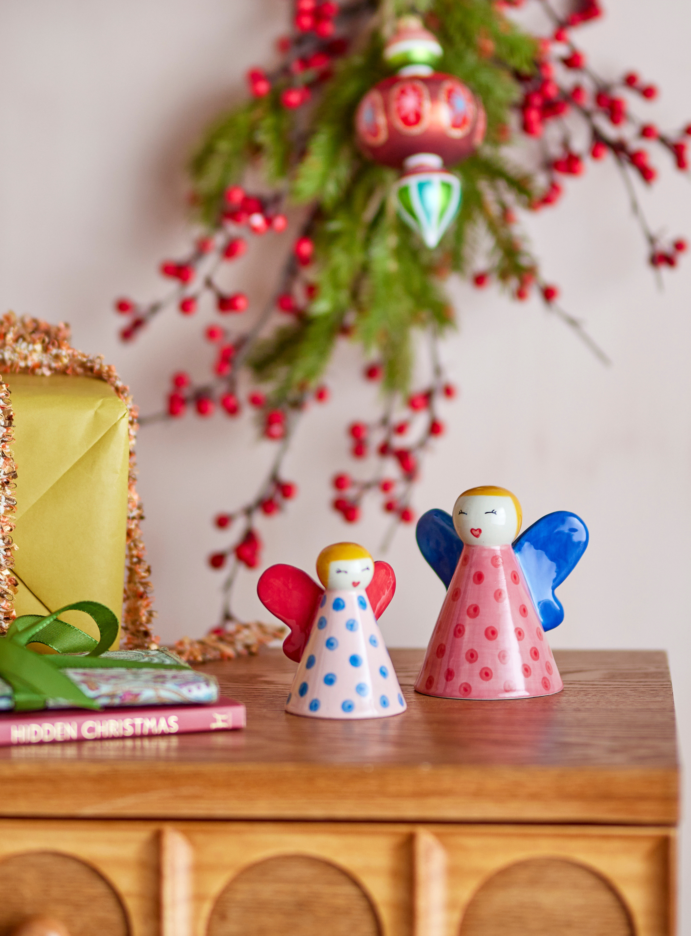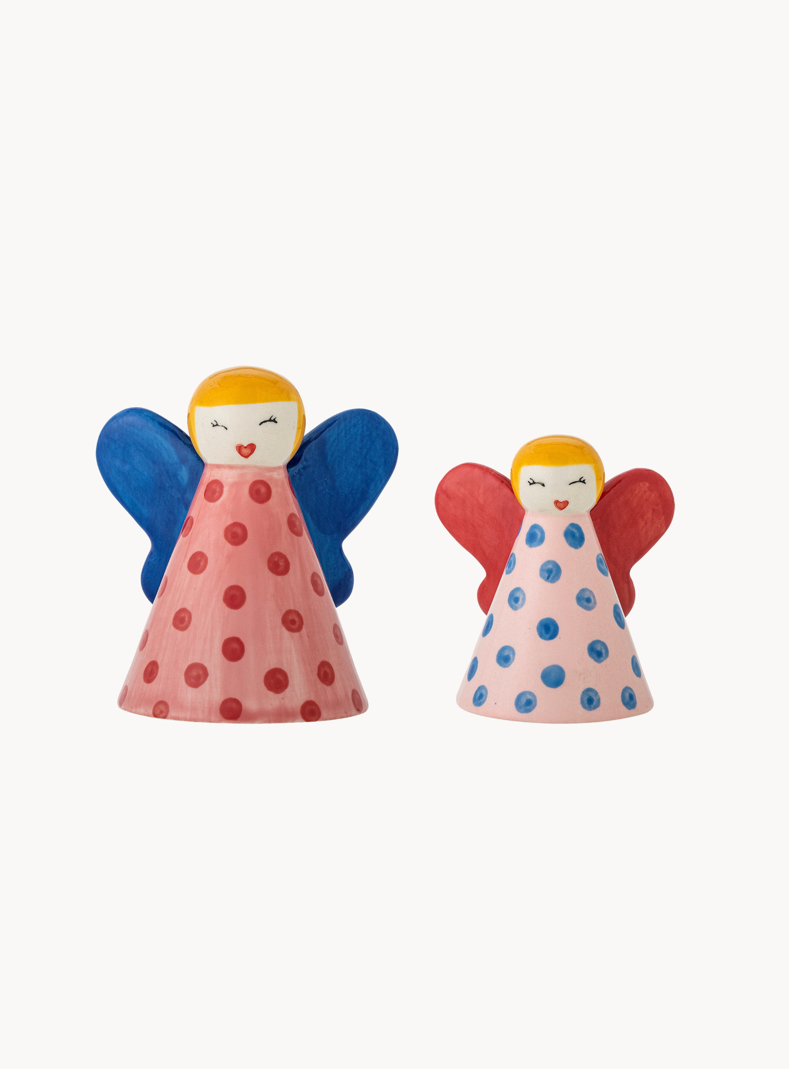 Die Caramella Deko von Bloomingville besteht aus zwei liebevoll handbemalten Engeln aus hochwertigem Steingut. Mit ihren lebhaften Farben und feinen Details bringen sie eine verspielte und zugleich elegante Note in dein Zuhause. Ob auf dem Weihnachtstisch, im Regal oder als ganzjährige Dekoration – diese charmanten Figuren sorgen überall für eine warme und festliche Atmosphäre.