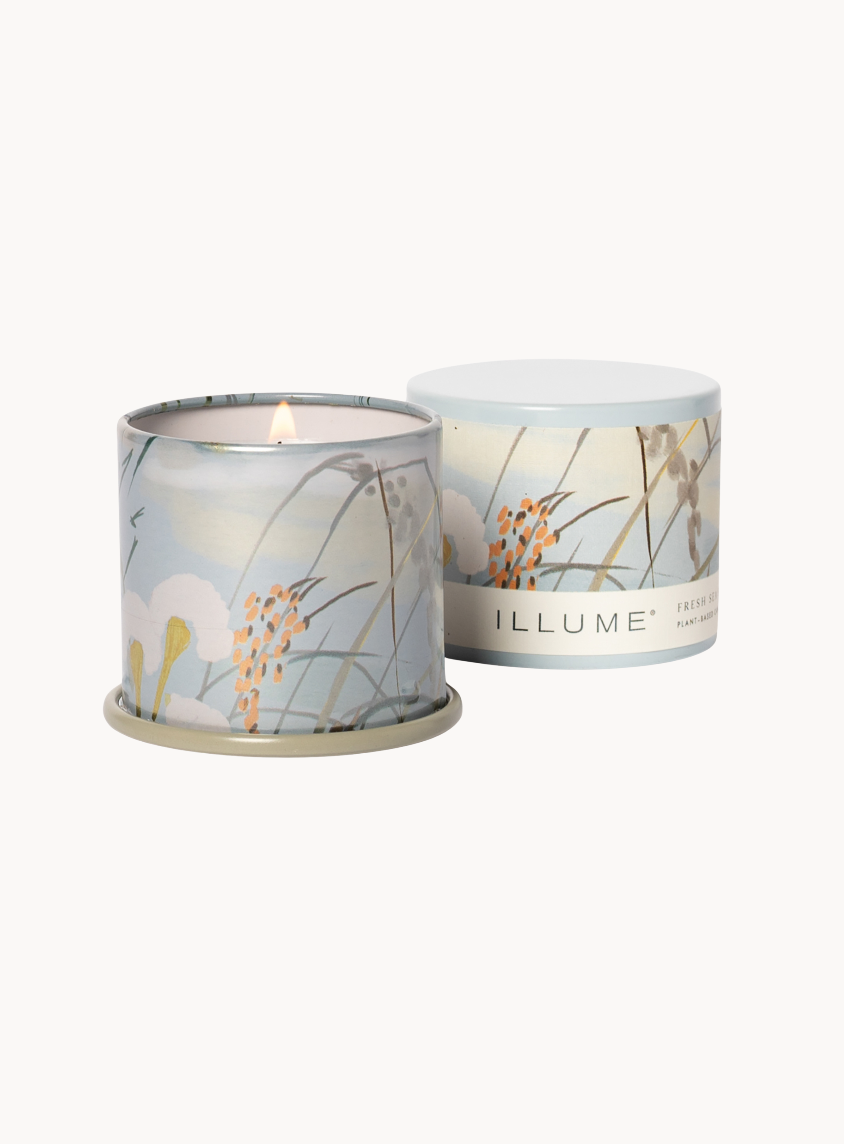 Die Fresh Sea Salt Demi Vanity Tin Kerze von ILLUME bringt die erfrischende Brise des Meeres direkt in Ihr Zuhause. Mit belebenden Duftnoten von salziger Meeresgischt und sanftem Jasmin erinnert sie an sonnige Tage am Ozean und sorgt für ein Gefühl von Leichtigkeit und Ruhe.