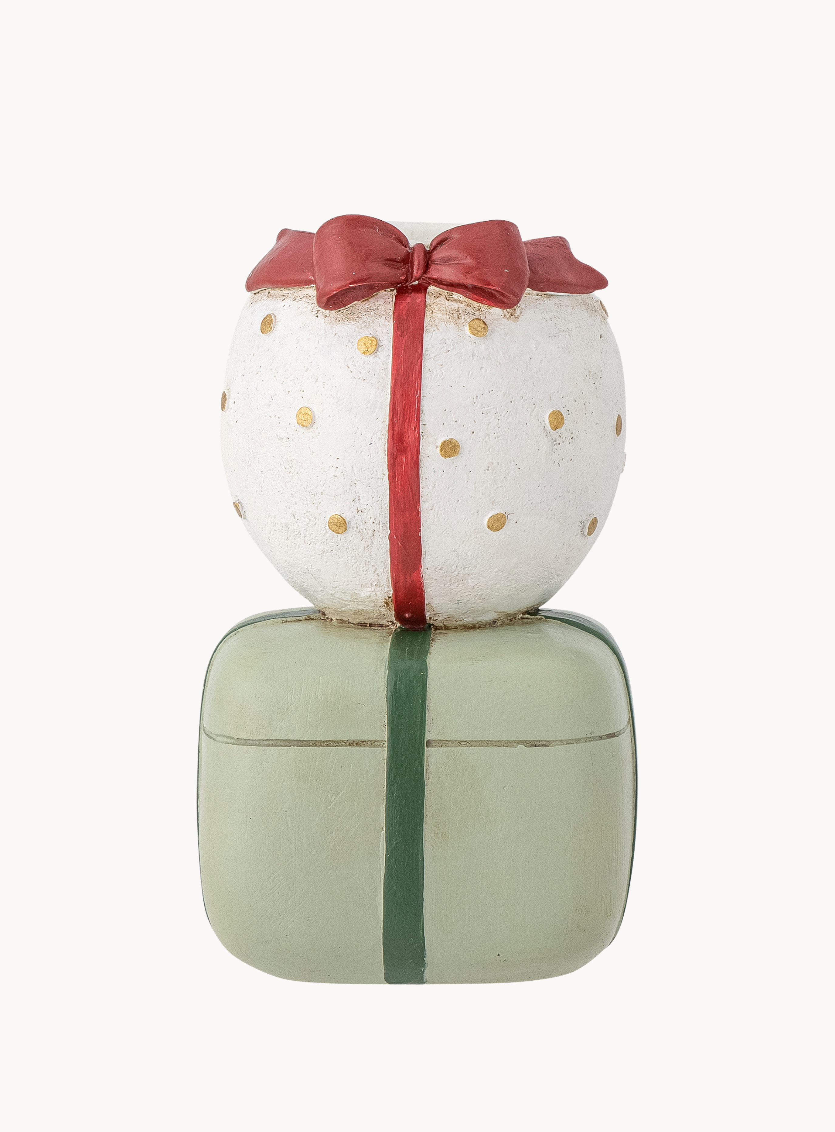 Der Kerzenhalter von Bloomingville ist eine charmante Weihnachtsdekoration aus Polyresin, gestaltet als Stapel festlich verpackter Geschenke. Die handbemalten Details verleihen jedem Stück einen individuellen Charakter und sorgen für eine warme, verspielte Note in deiner Weihnachtsdekoration. Ideal für den Esstisch, das Regal oder als kleines Highlight auf der Fensterbank.