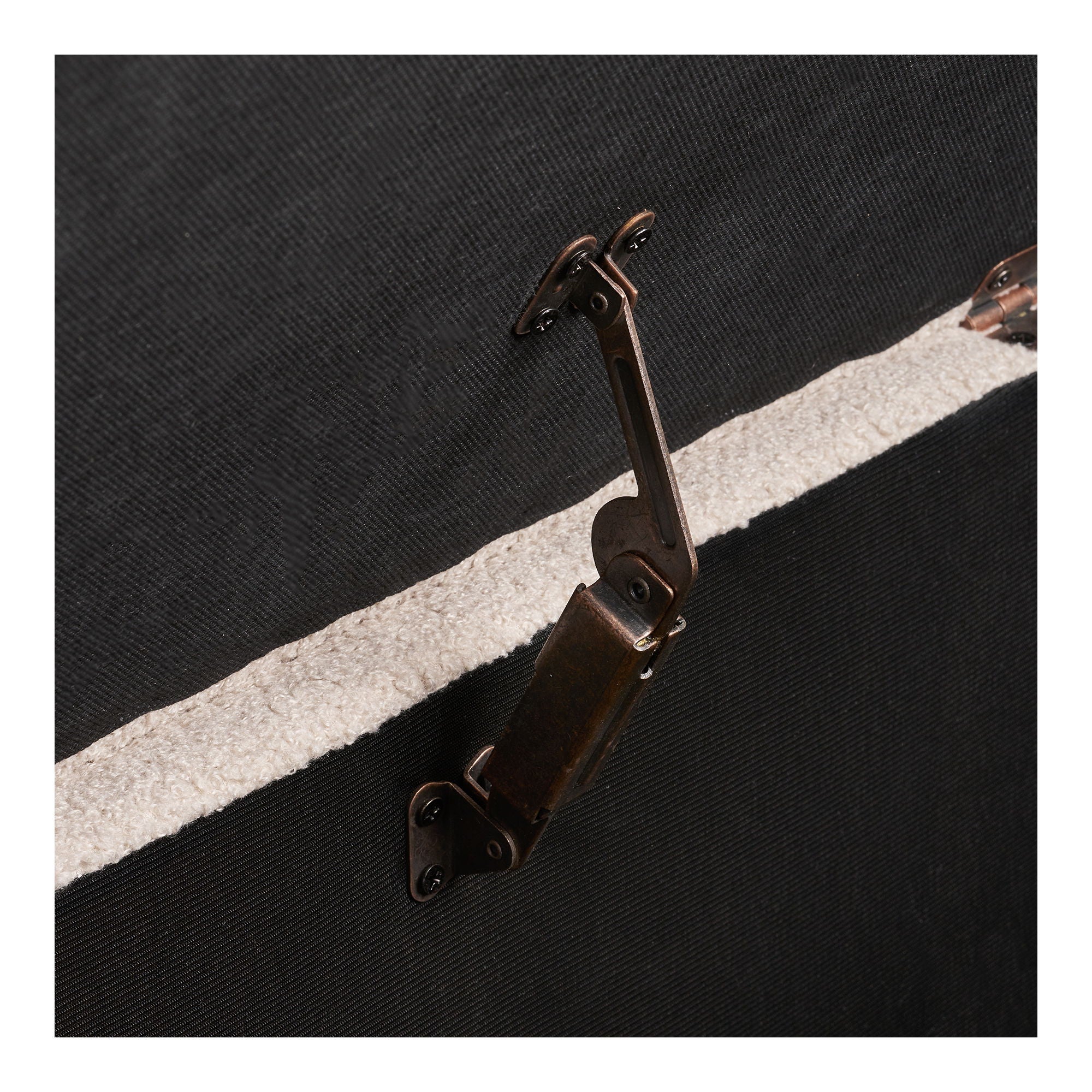 Unter der gepolsterten Sitzfläche verbirgt sich ein großzügiger Stauraum – ideal für Decken, Kissen oder Alltagsgegenstände. Dank ihrer kompakten Größe passt die Bank perfekt in Flur, Schlafzimmer oder Wohnzimmer und setzt dabei stilvolle Akzente.