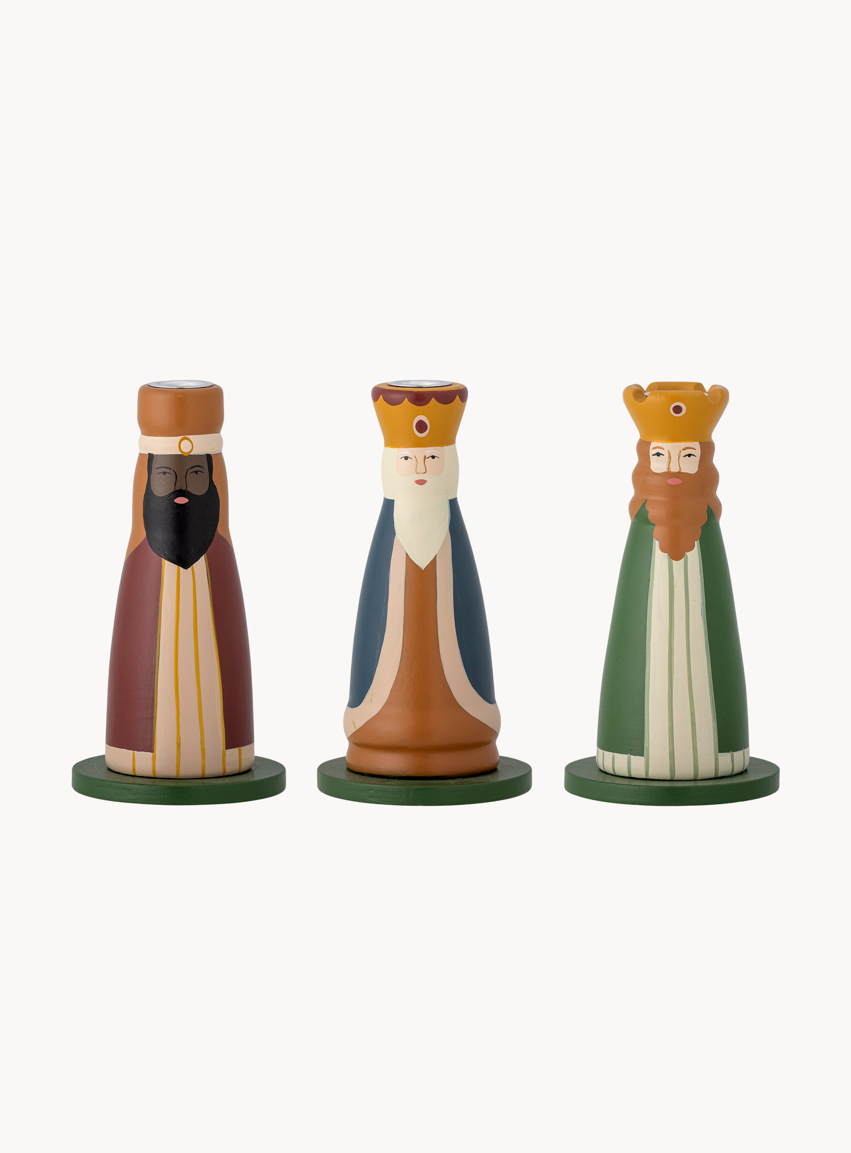Die Betiel Kerzenhalter von Bloomingville sind ein liebevoll gestaltetes 3er-Set aus Buchenholz mit Motiven der Heiligen Drei Könige. Ihr schlichtes, modernes Design mit farbenfrohen Akzenten macht sie zu einem stilvollen Blickfang in der Weihnachtsdekoration. Ob einzeln oder zusammen arrangiert – diese Kerzenhalter bringen festliche Stimmung und skandinavischen Charme in dein Zuhause.