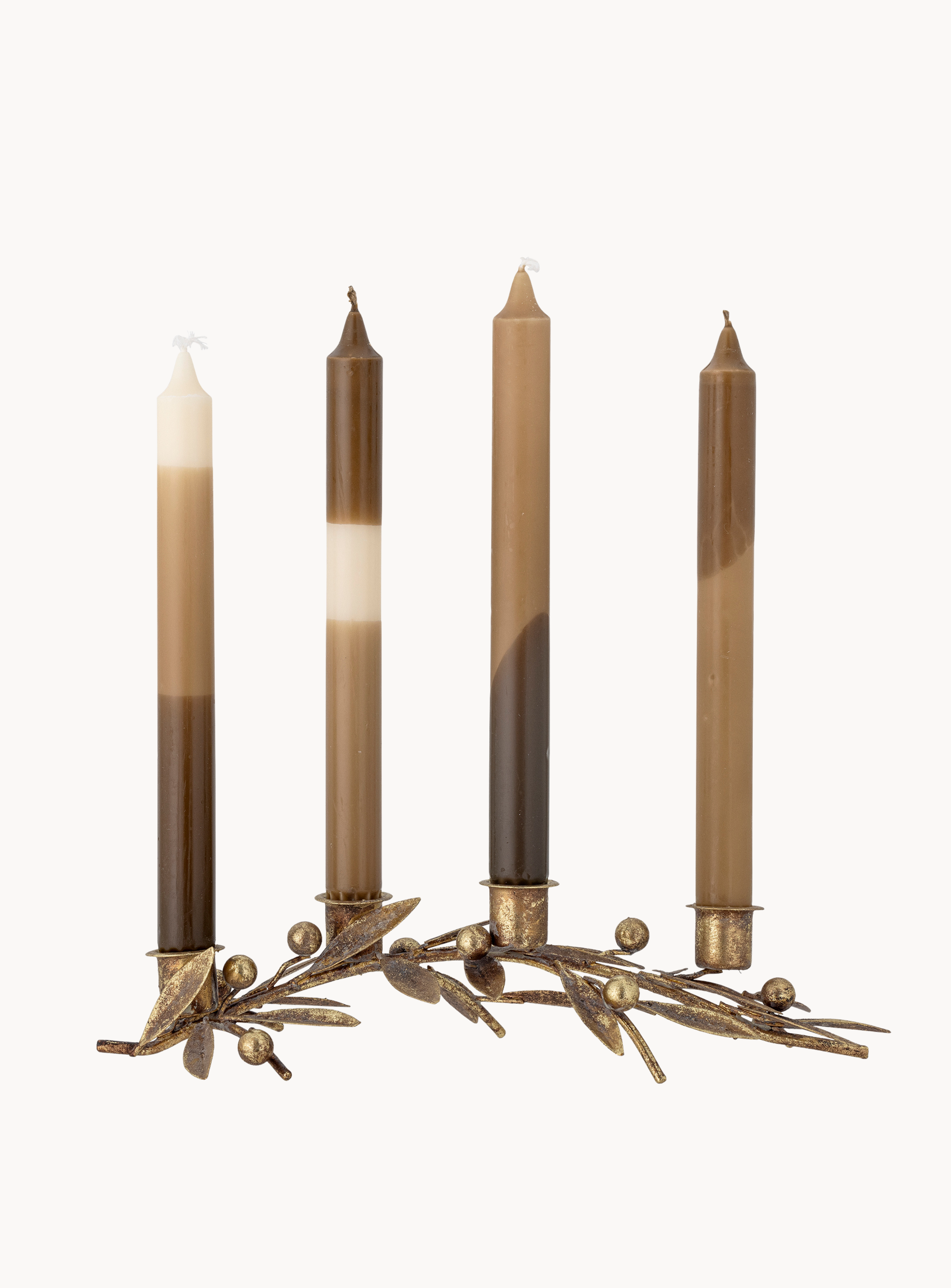 Der Mirabel Kerzenhalter von Bloomingville bringt festlichen Glanz in dein Zuhause. Hergestellt aus Metall mit einem edlen, patinierten Goldfinish, ist sein Design von den Blättern und Beeren des Mistelzweigs inspiriert. Dieses stilvolle Stück verleiht jeder Tischdekoration oder Fensterbank eine warme, elegante Weihnachtsatmosphäre.