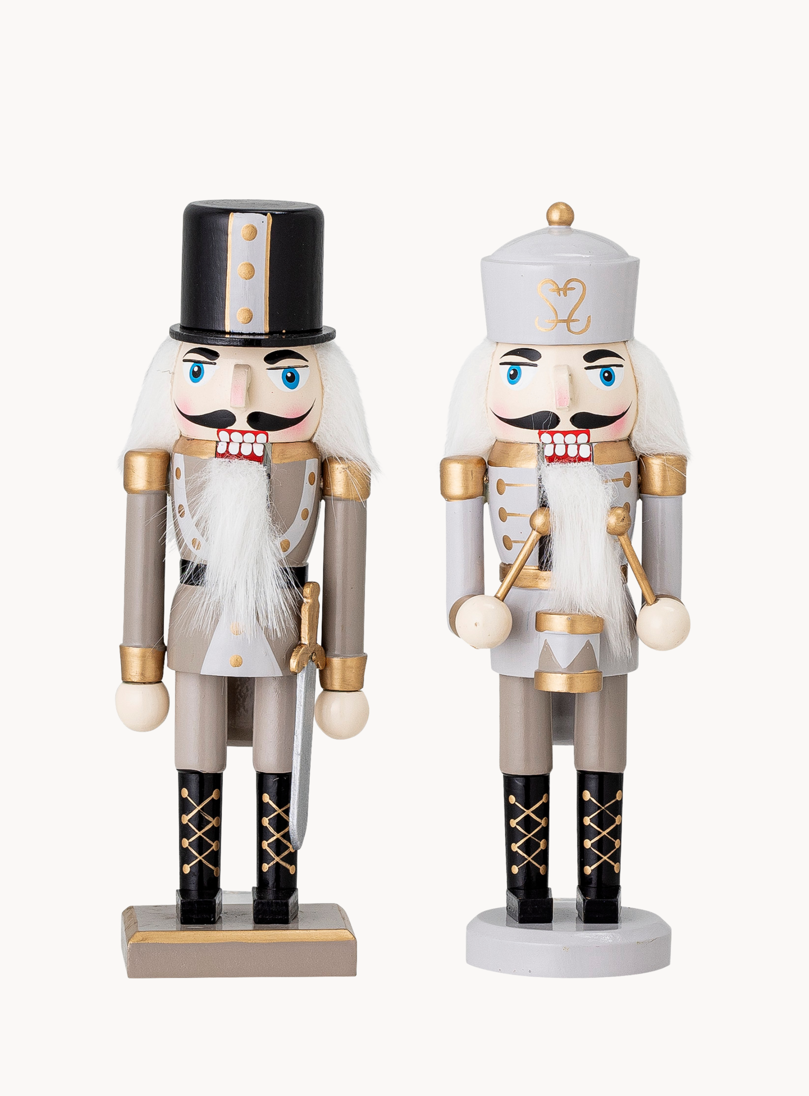 Die Darren Deko von Bloomingville ist ein stilvolles Set aus zwei dekorativen Nussknackern aus Kiefernholz. In sanften Grau- und Beigetönen mit schwarzen und goldenen Akzenten bemalt, verleihen sie jedem Raum eine elegante, festliche Note. Diese geschmackvollen Figuren eignen sich perfekt als Weihnachtsdekoration auf Kommoden, Regalen oder Fensterbänken – und begeistern Jahr für Jahr aufs Neue.