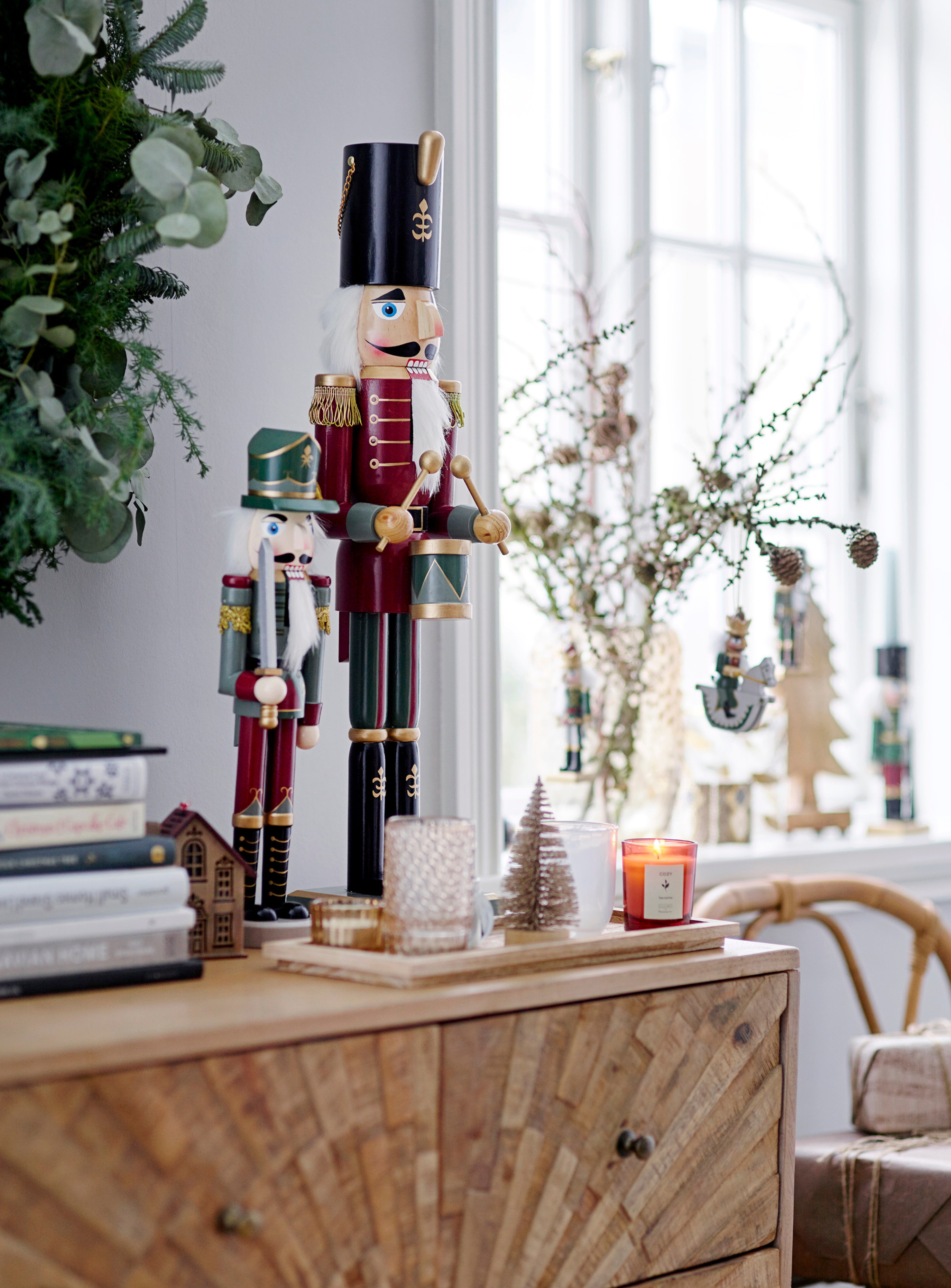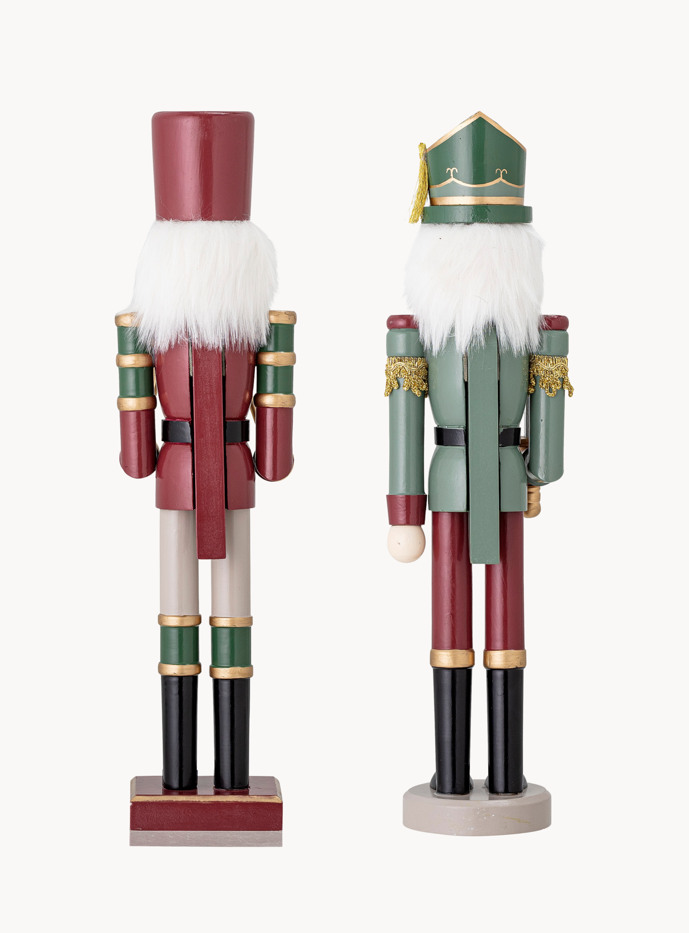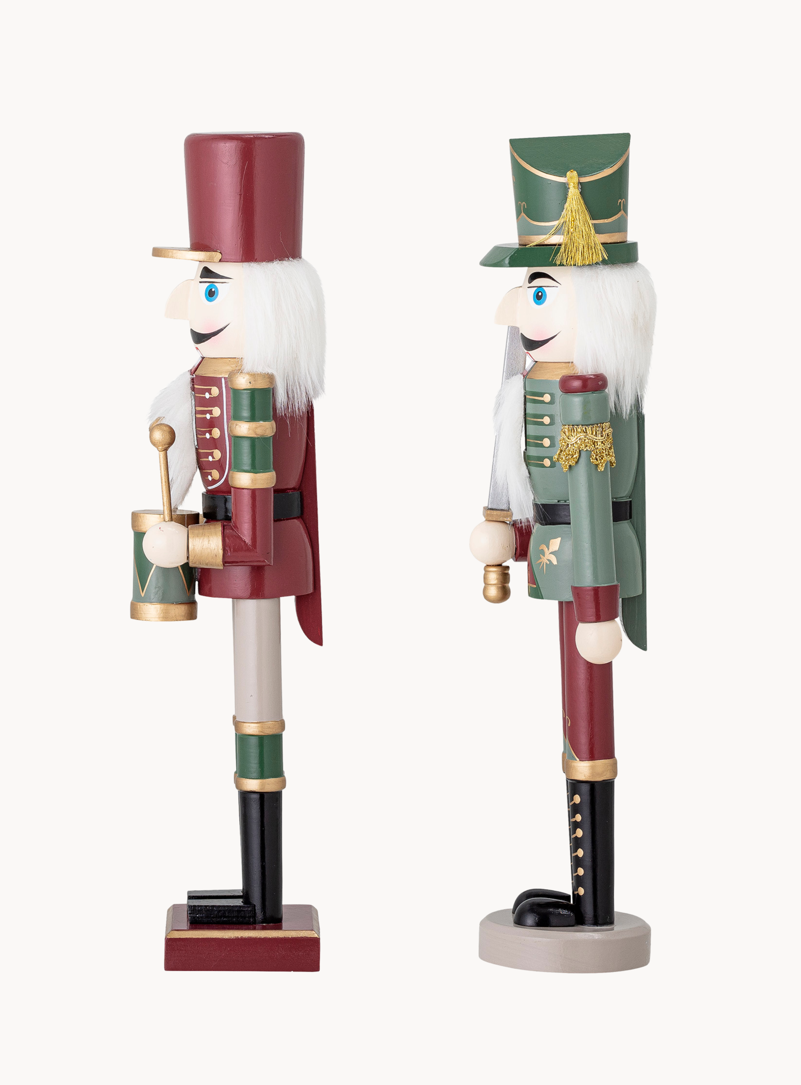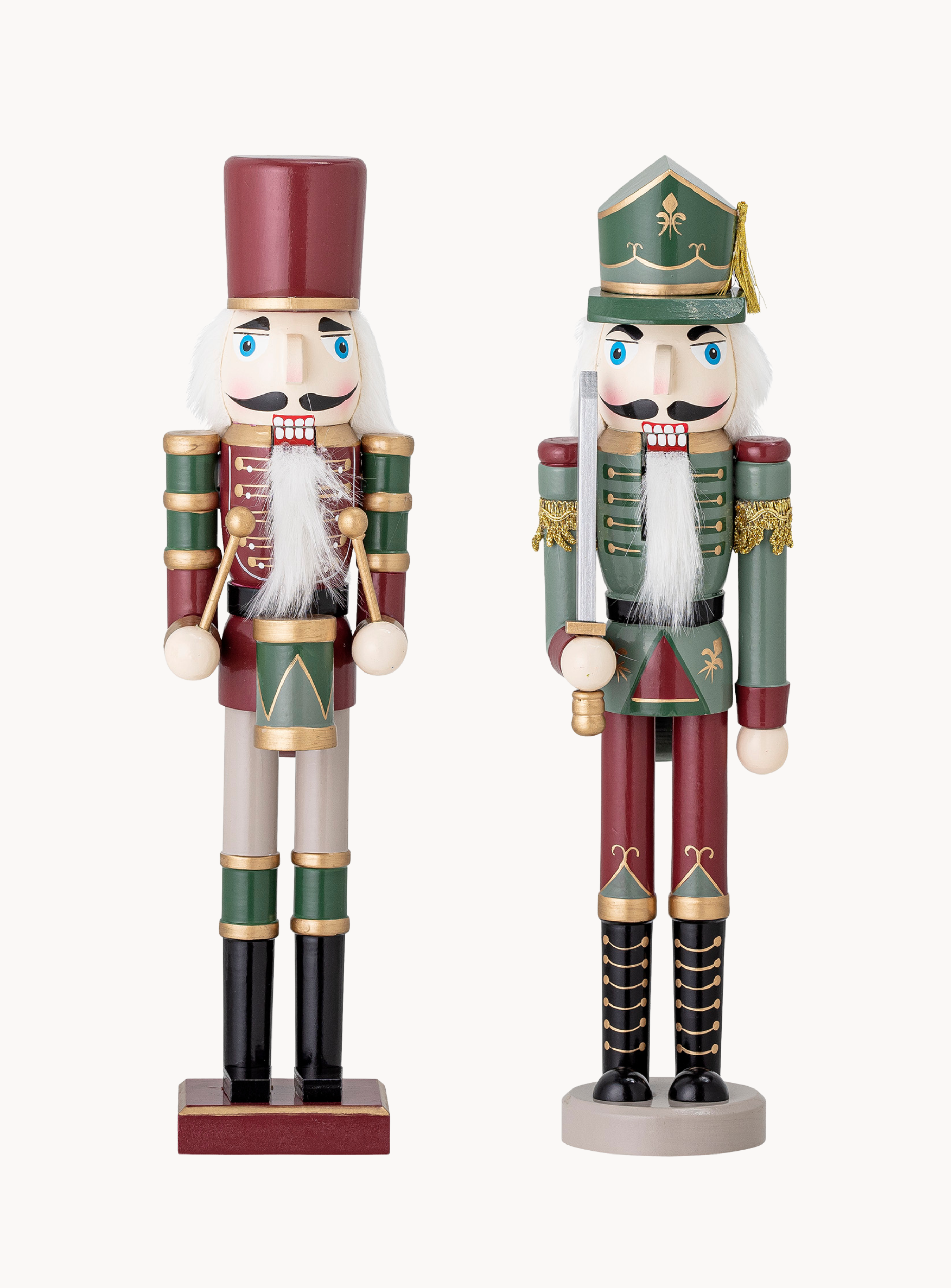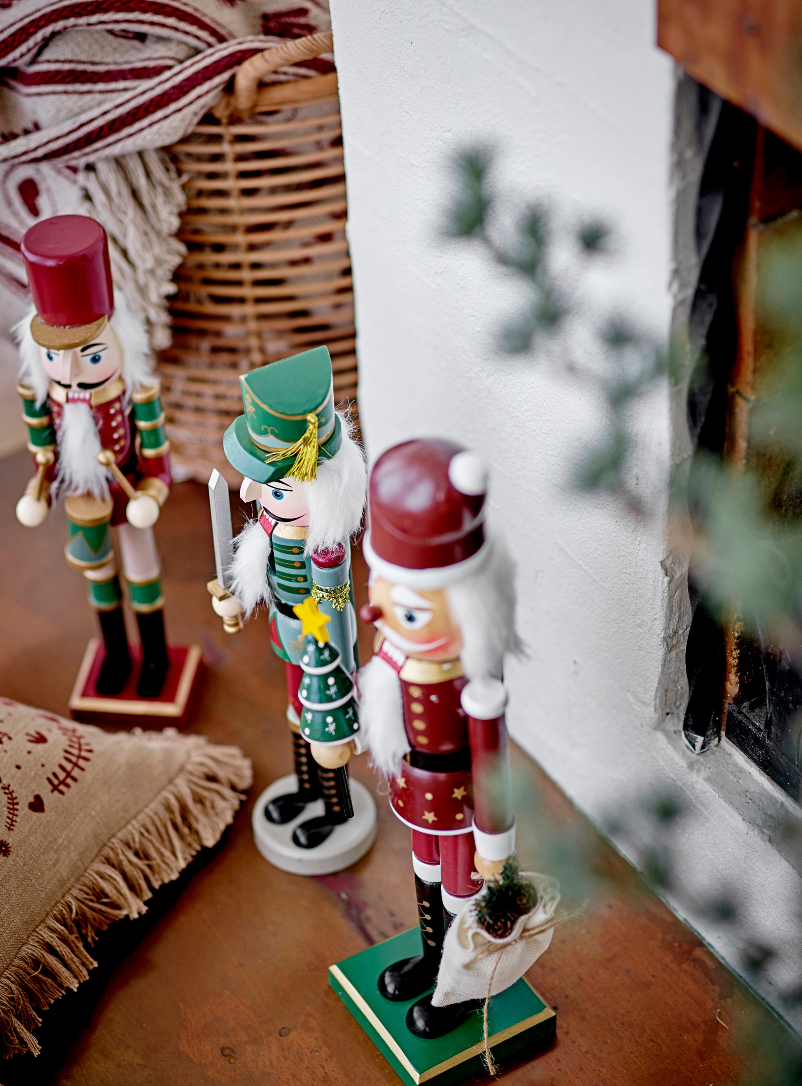 Die Darren Deko von Bloomingville besteht aus zwei wunderschönen Nussknackern aus Kiefernholz, die in sanften Rot- und Grüntönen mit feinen goldenen Akzenten bemalt sind. Mit ihrem klassischen, eleganten Design bringen sie traditionellen Weihnachtscharme in dein Zuhause. Ob auf dem Regal, im Wohnzimmer oder im Flur – dieses Set sorgt jedes Jahr aufs Neue für eine festliche und stilvolle Atmosphäre.