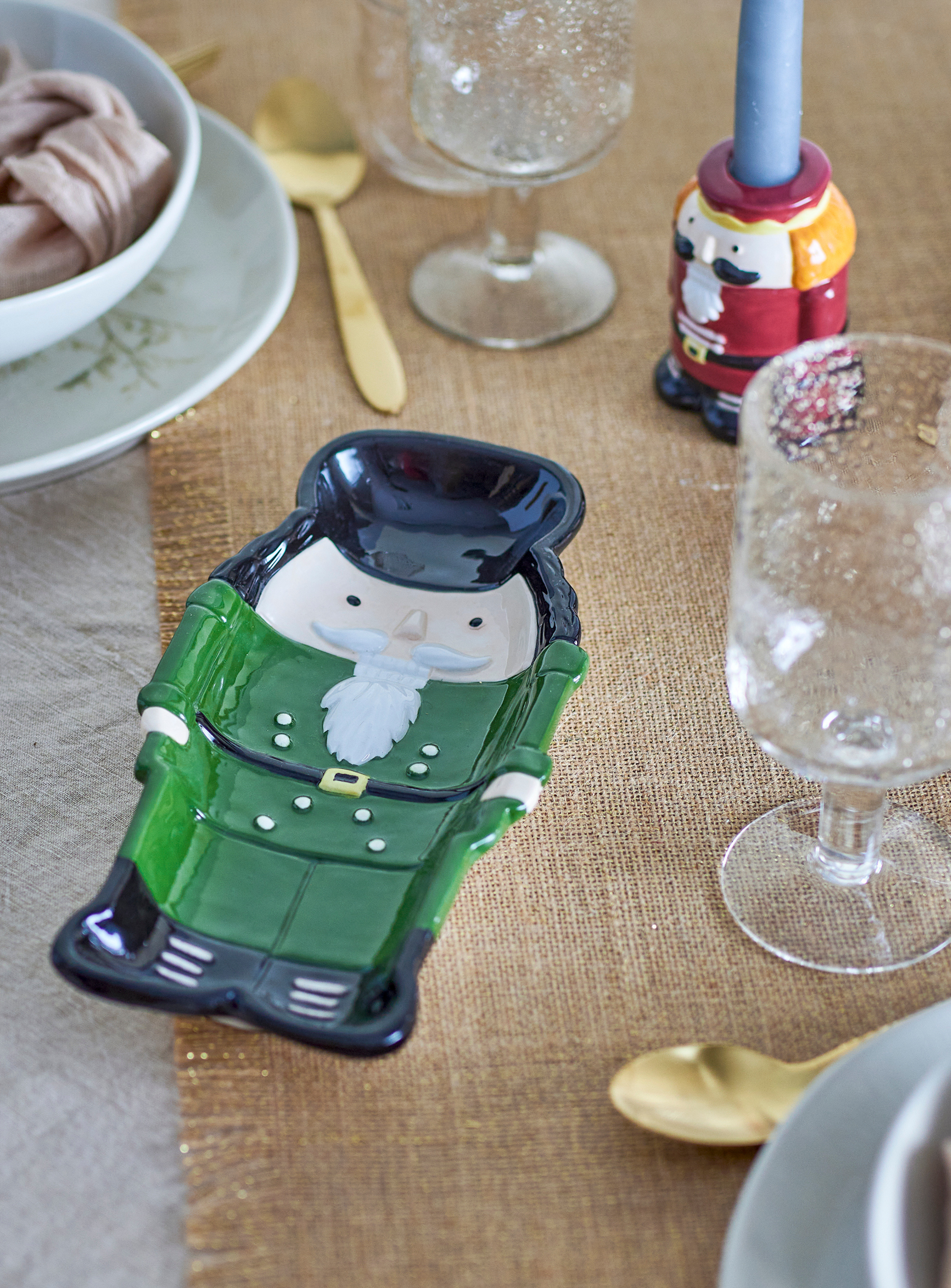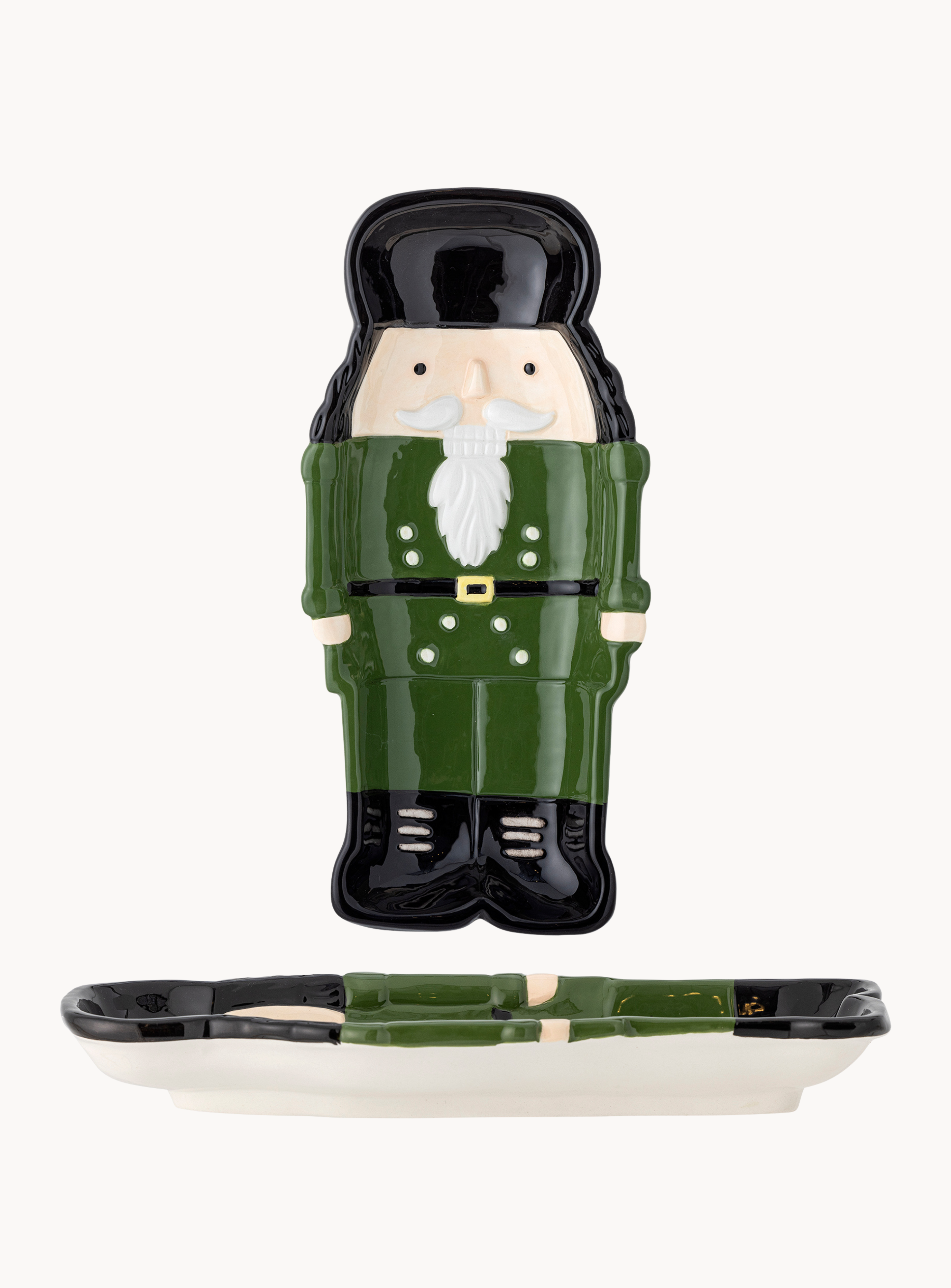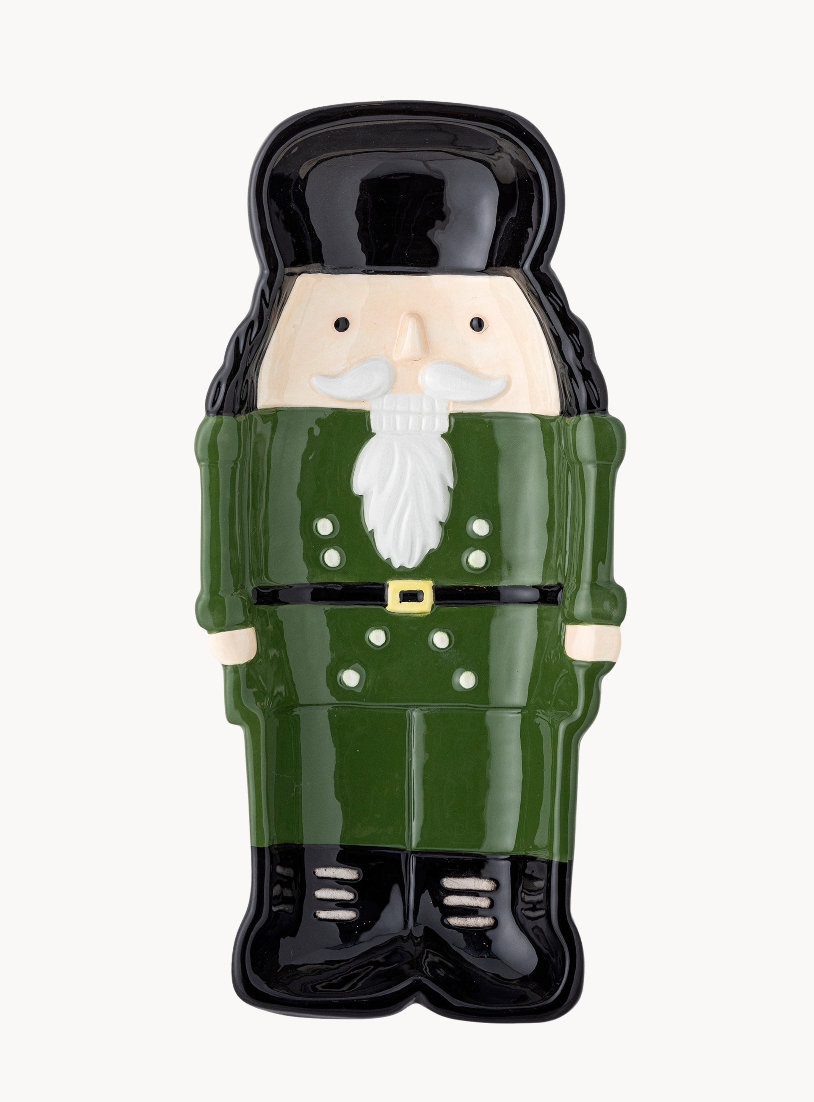 Die Feast Servierplatte von Bloomingville ist ein echter Hingucker für den festlich gedeckten Tisch. In Form eines liegenden Nussknackers gestaltet und sorgfältig von Hand bemalt, vereint sie traditionelle Weihnachtsmotive mit modernem Design. Die detailreiche Bemalung in Grün- und Schwarztönen verleiht der Platte Charakter und Charme. Perfekt zum Servieren kleiner Leckereien oder als stilvolles Dekorationsstück – jedes Exemplar ist dank der Handarbeit ein Unikat.