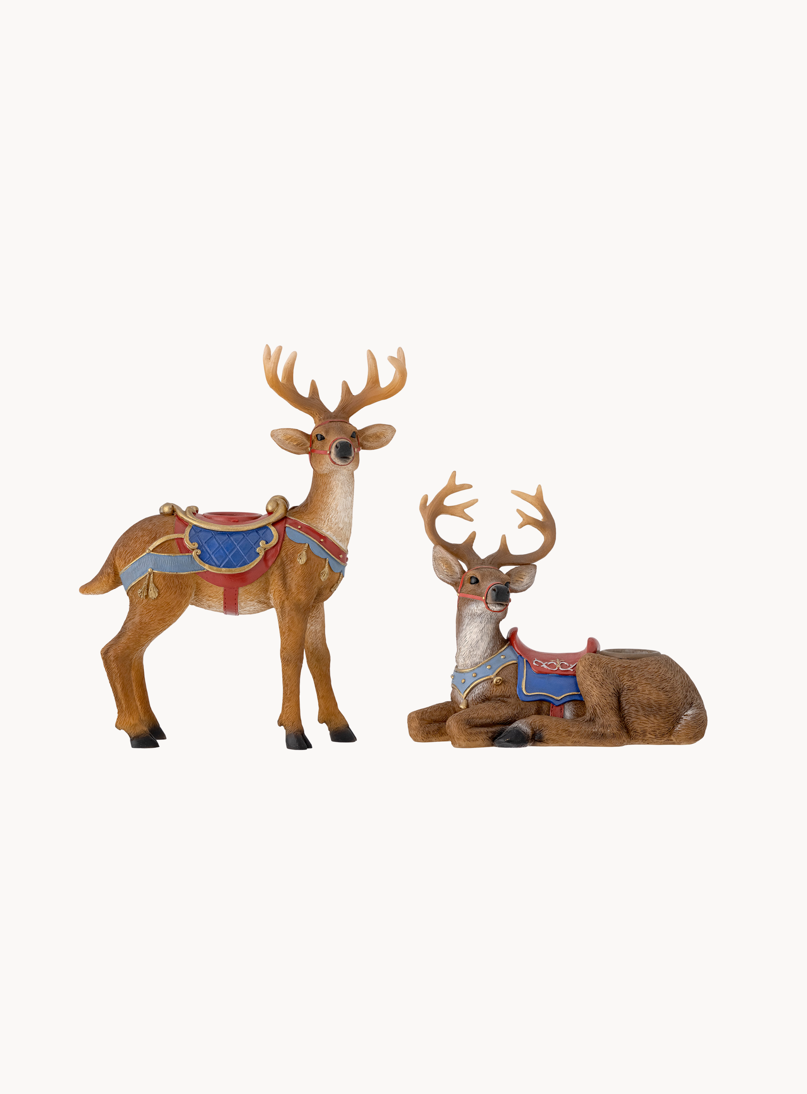 Die Glory Kerzenhalter von Bloomingville sind ein charmantes Set aus zwei dekorativen Rentieren. Mit ihren liebevoll handbemalten Details in traditionellen Weihnachtsfarben und goldenen Akzenten bringen sie festliche Stimmung in dein Zuhause. Ideal für den Esstisch, die Fensterbank oder als Teil einer weihnachtlichen Dekoration sorgen sie für ein warmes und gemütliches Ambiente.