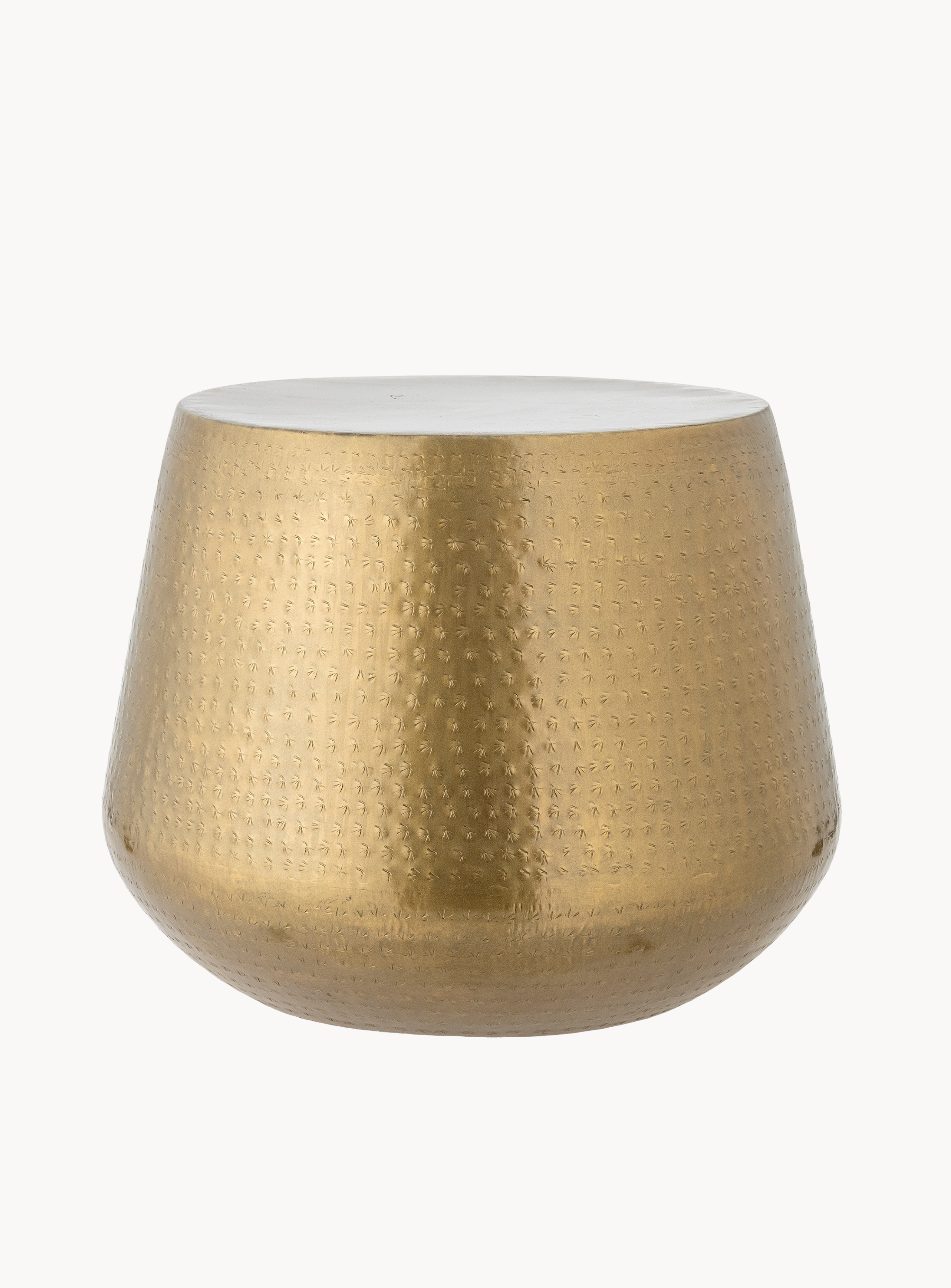Der Avola Couchtisch besteht aus Eisen mit einem goldfarbenen Finish und einer bewusst rauen, leicht gehämmerten Oberfläche. Die runde Form macht ihn vielseitig einsetzbar, zum Beispiel als Couchtisch im Wohnzimmer oder als dekorativer Beistelltisch. Das rustikale Design verleiht dem Raum eine elegante und zugleich warme Note und lässt sich gut mit verschiedenen Einrichtungsstilen kombinieren.