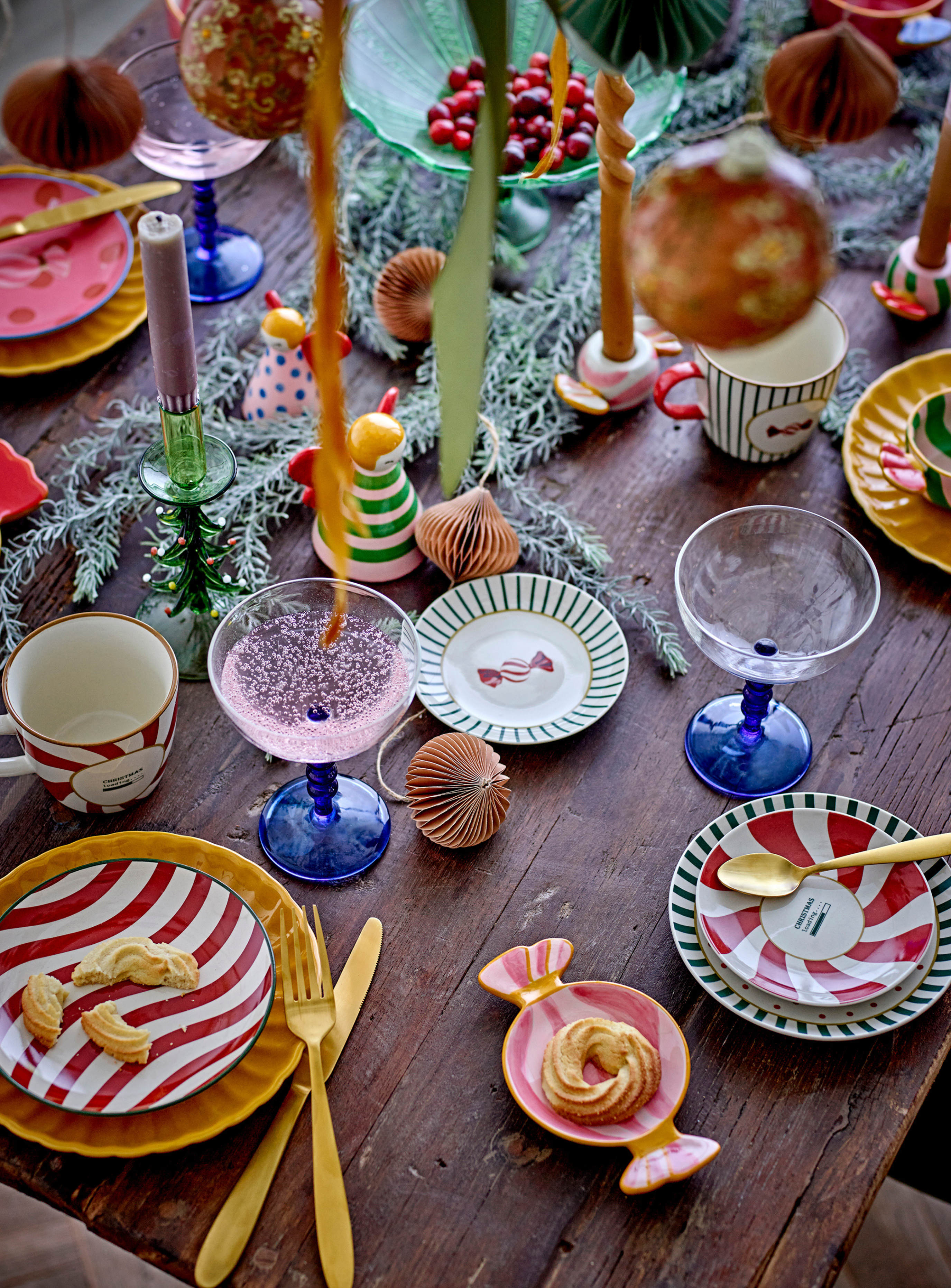 Die Yule Teller von Bloomingville bringen mit ihrem festlichen Design weihnachtliche Stimmung auf den Tisch. Verziert mit roten Spiralmustern oder grünen Streifen und einem dekorativen Motiv in der Mitte, vereinen sie klassischen Charme mit moderner Verspieltheit.
