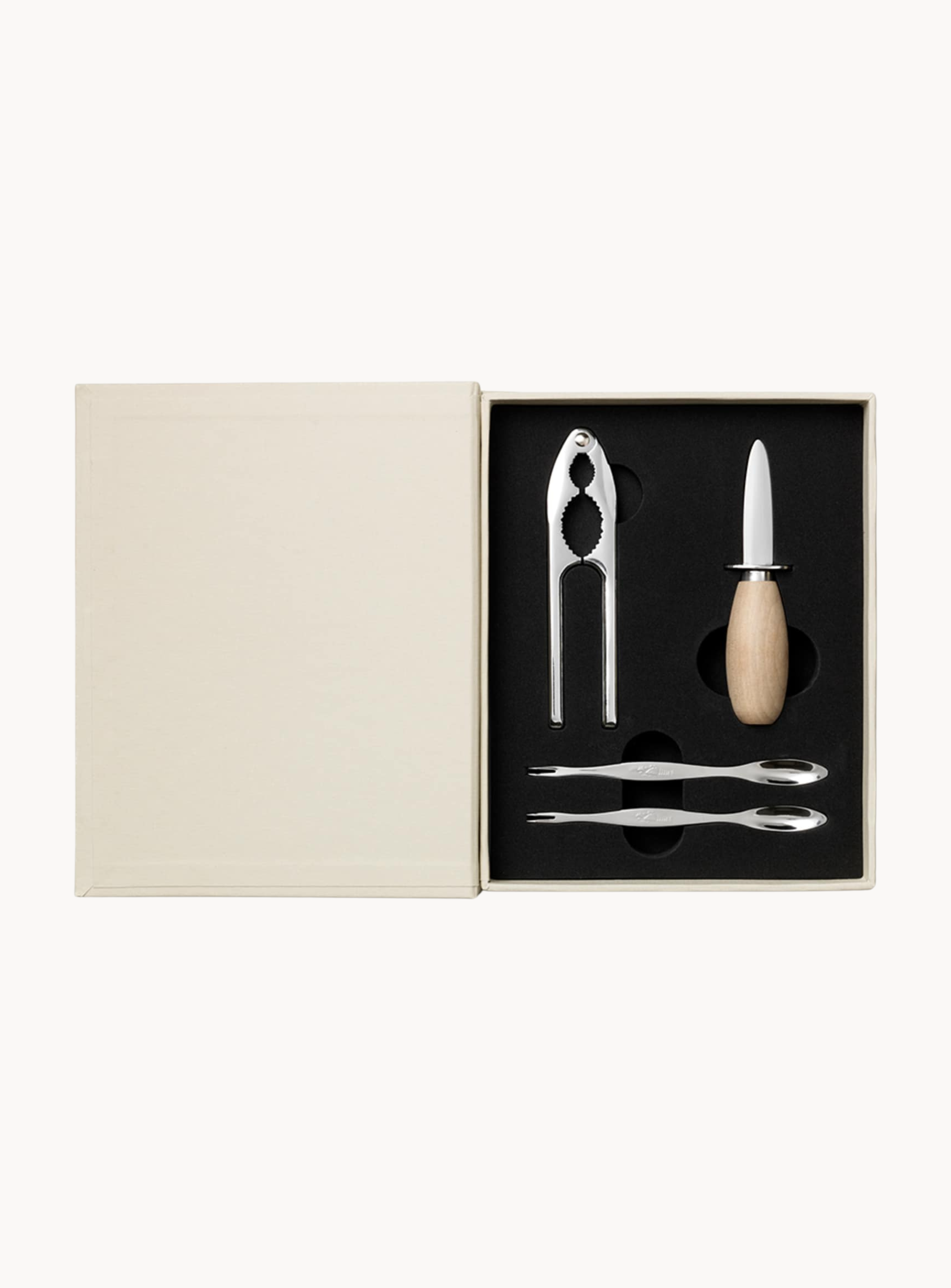 Inhalt: Austernmesser, Shell Cracker, vier Seafood Gabeln