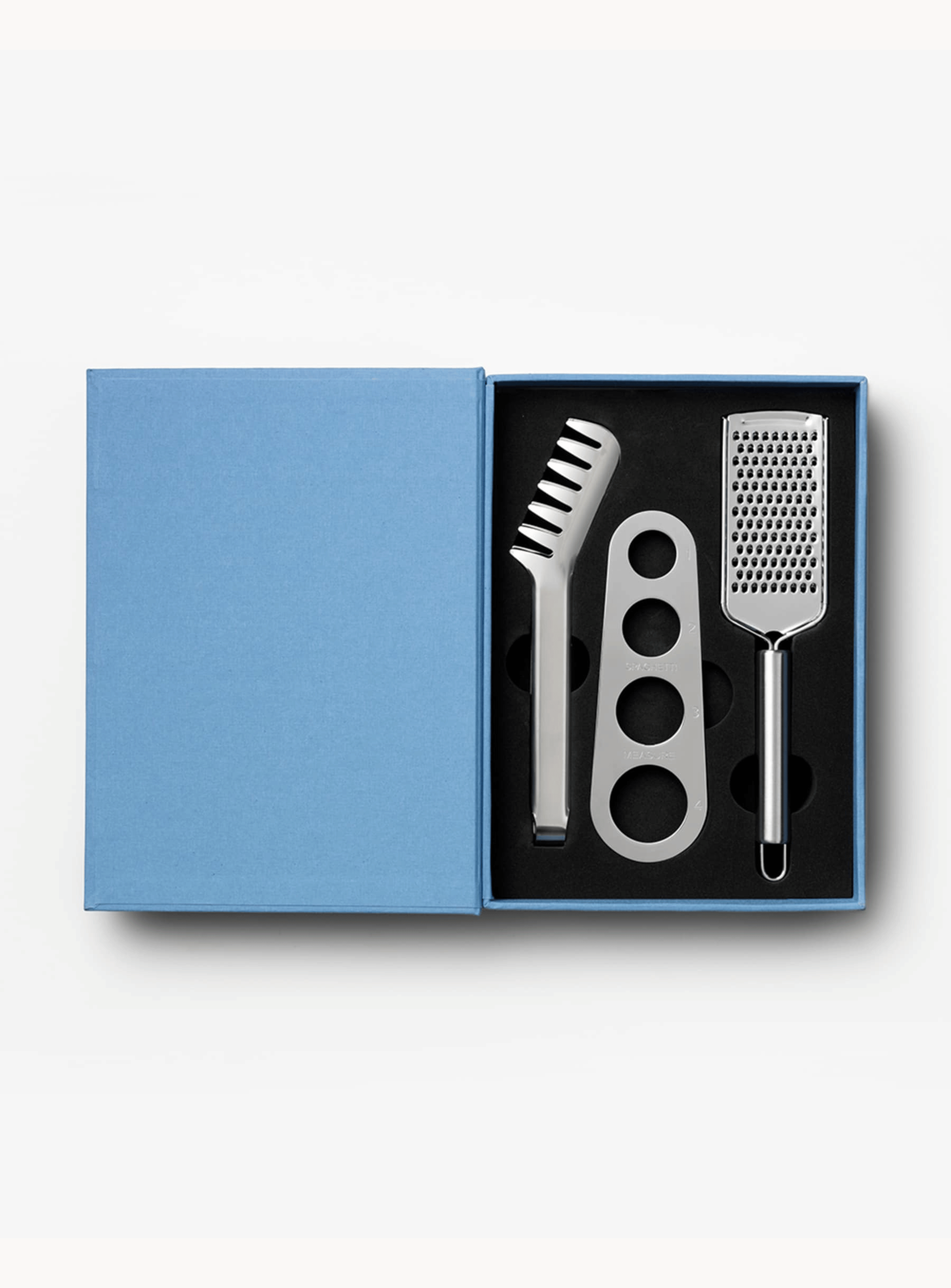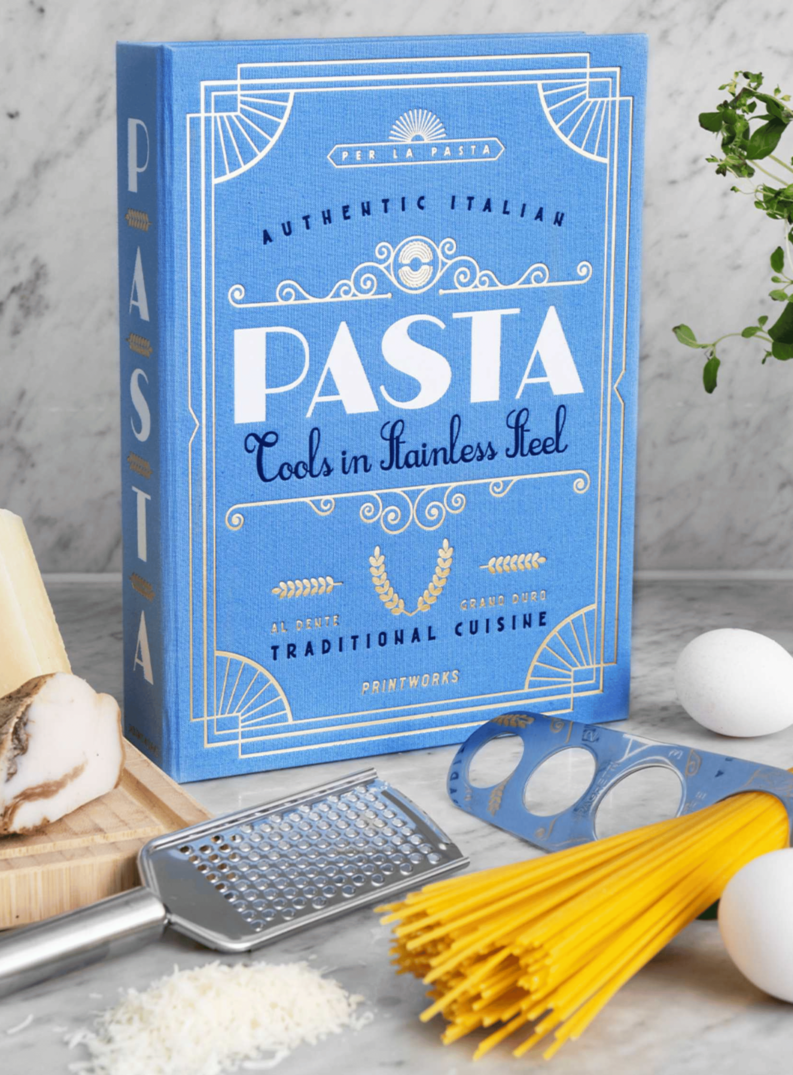 Das Essentials Pastaset ist eine stilvolle Auswahl an Werkzeugen für perfekte Pastaabende und kommt in einer eleganten Box im Buchformat. Beim Öffnen findest du alle wichtigen Utensilien, um Pasta zu kochen, zu servieren und stilecht zu genießen. Das Set ist ideal für die eigene Küche oder als geschmackvolles Geschenk für Genießer.