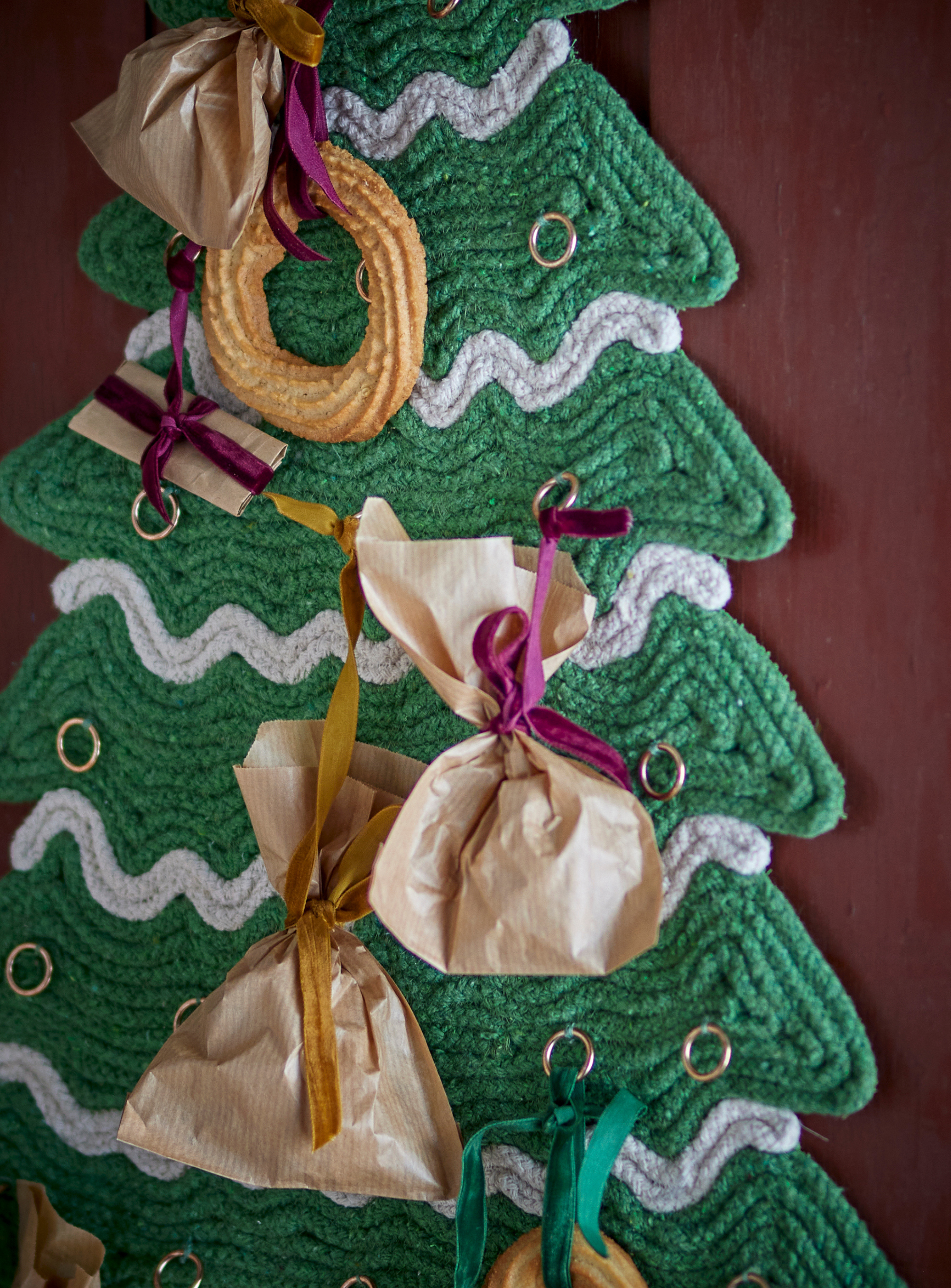 Der Douglas Kalender von Bloomingville ist ein wunderschöner Adventskalender in Form eines Weihnachtsbaums. Er ist aus hochwertiger Baumwolle gefertigt und mit 24 goldfarbenen Ringen versehen, an denen kleine Geschenke, Süßigkeiten oder Anhänger befestigt werden können. Mit der praktischen Aufhängung auf der Rückseite lässt sich der Kalender leicht an der Wand anbringen und sorgt für einen kreativen und stilvollen Countdown bis Weihnachten. Auch flach liegend auf dem Tisch ist er eine elegante Ergänzung der Festdekoration.