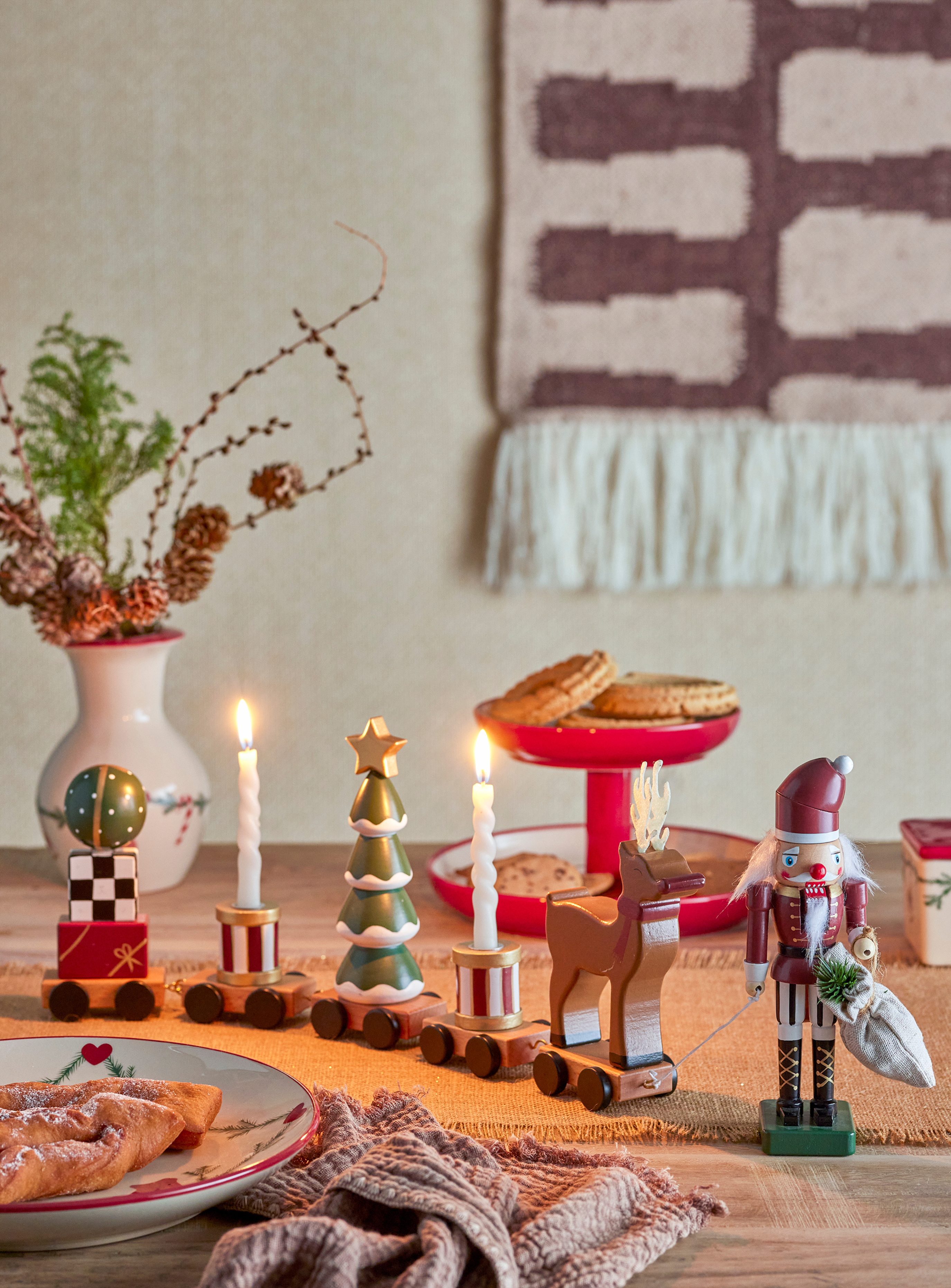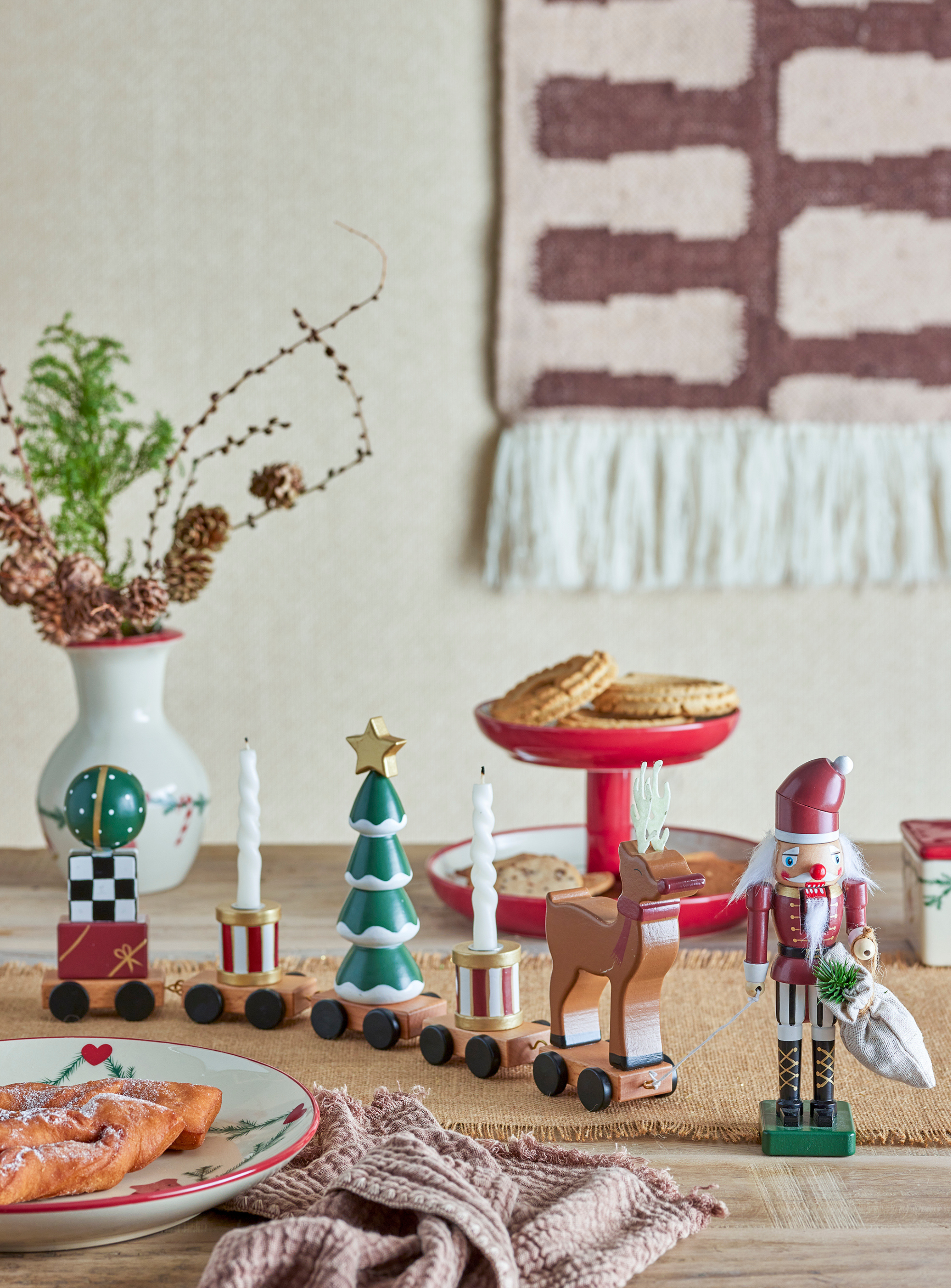 Die Vadim Deko von Bloomingville ist eine detailreiche Weihnachtsdekoration aus FSC®-zertifiziertem Holz. Sie zeigt einen festlichen Zug mit dem Weihnachtsmann an der Spitze und liebevoll gestalteten Waggons, die klassische Weihnachtsmotive tragen. In warmen, traditionellen Farben gestaltet, verbreitet diese Dekoration eine gemütliche und festliche Atmosphäre. Ideal als Blickfang auf dem Tisch, Regal oder Fensterbrett, um deinem Zuhause einen Hauch von Weihnachtsmagie zu verleihen.