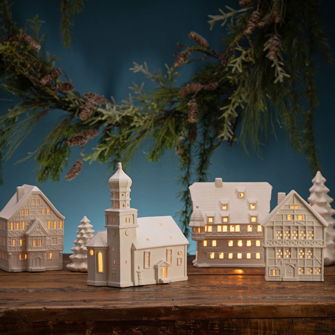 Das Lichthaus Kirche Wasserburg aus feinem weißen Porzellan ist ein elegantes Highlight für die Weihnachtszeit. Mit seiner detailreichen Gestaltung und dem klassischen Kirchendesign verbreitet es festliche Stimmung und schafft eine warme, gemütliche Atmosphäre.